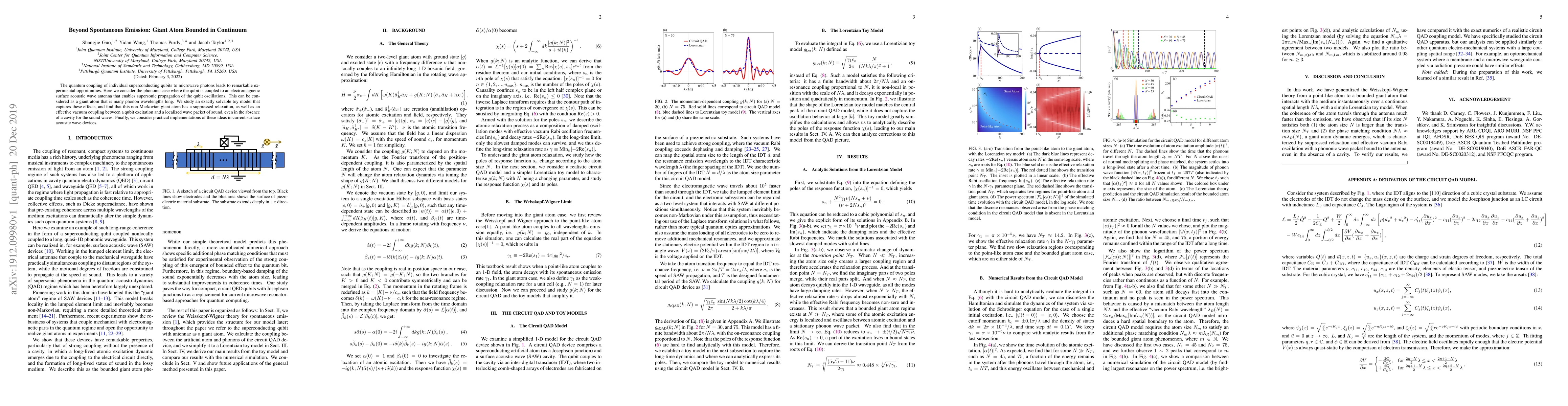 The quantum coupling of individual superconducting qubits to microwave photons leads to remarkable experimental opportunities. Here we consider the phononic case where the qubit is coupled to an electromagnetic surface acoustic wave antenna that enables supersonic propagation of the qubit oscillations. This can be considered as a giant atom that is many phonon wavelengths long. We study an exactly solvable toy model that captures these effects, and find that this non-Markovian giant atom has a suppressed relaxation, as well as an effective vacuum coupling between a qubit excitation and a localized wave packet of sound, even in the absence of a cavity for the sound waves. Finally, we consider practical implementations of these ideas in current surface acoustic wave devices.