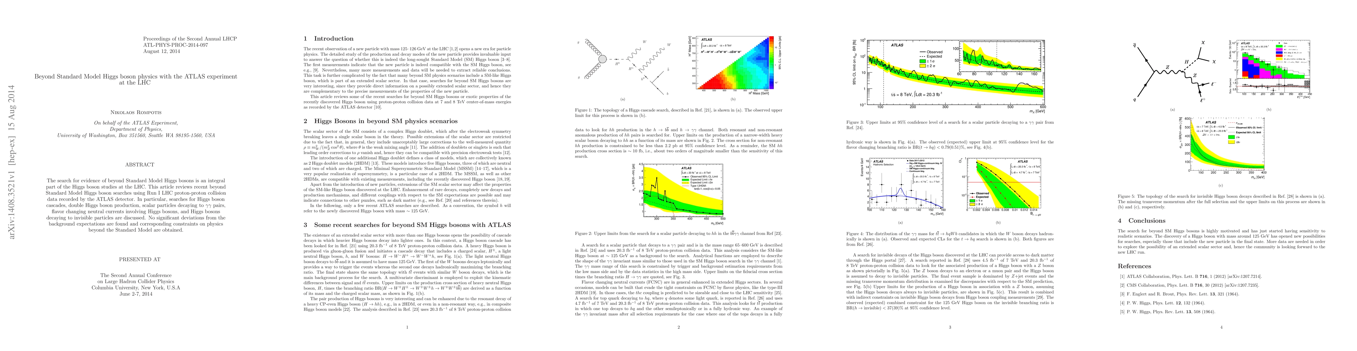 This paper reviews recent searches for beyond Standard Model Higgs boson phenomena using ATLAS data from Run I of the LHC, focusing on cascades, double Higgs production, decays to $\gamma\gamma$ pairs, flavor-changing neutral currents, and invisible decays. No significant deviations from Standard Model predictions were found, providing constraints on potential new physics.