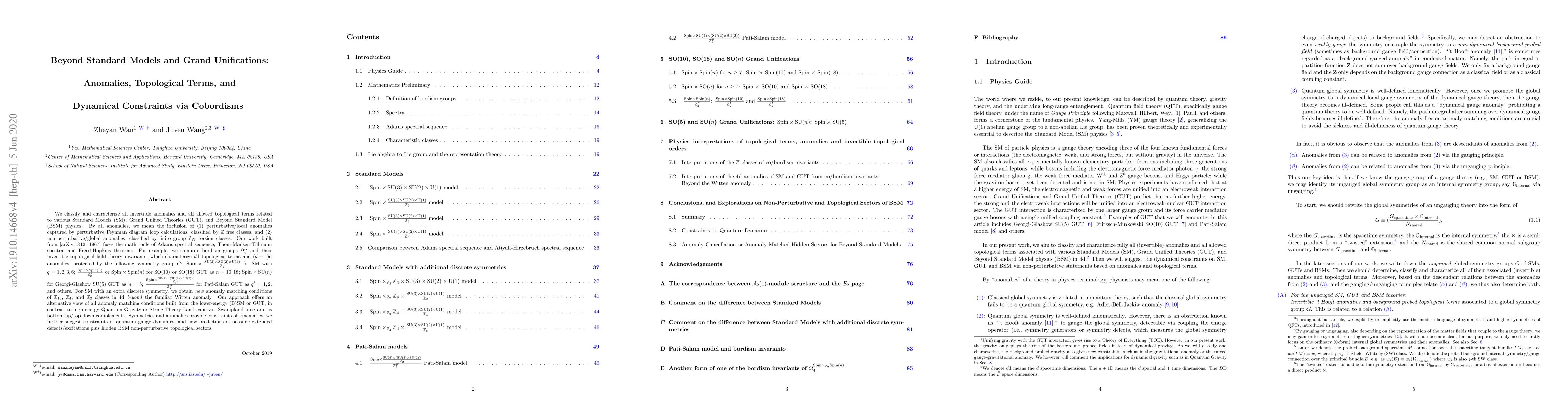 This paper classifies and characterizes all invertible anomalies and topological terms in Standard Models, Grand Unified Theories, and Beyond Standard Model physics, employing advanced mathematical tools and cobordism theory. It identifies new anomaly matching conditions and predicts extended defects/excitations, offering a bottom-up perspective on constraints and dynamics in particle physics.