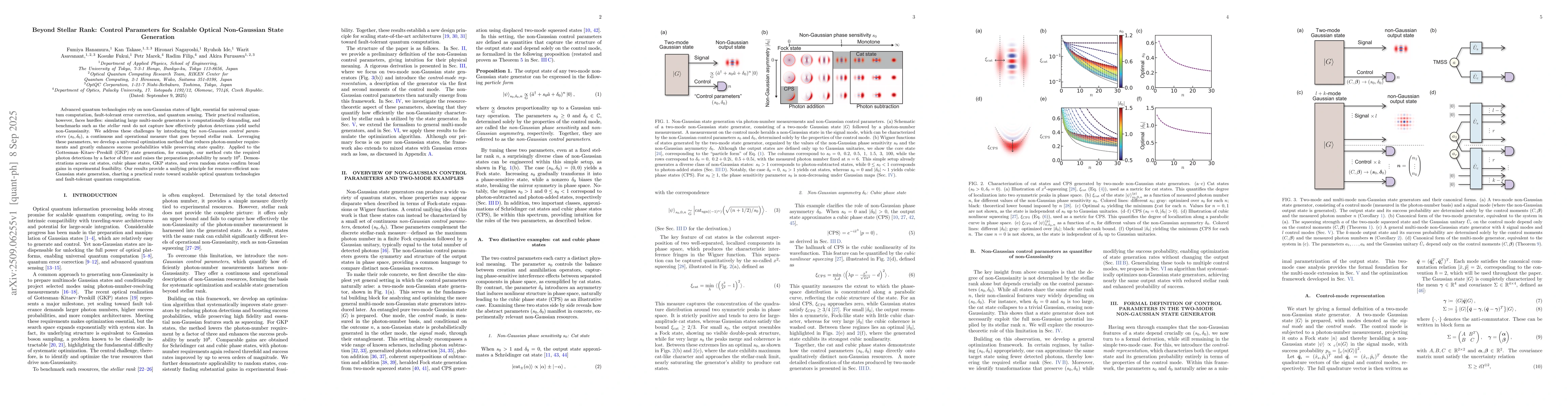 Advanced quantum technologies rely on non-Gaussian states of light, essential for universal quantum computation, fault-tolerant error correction, and quantum sensing. Their practical realization, however, faces hurdles: simulating large multi-mode generators is computationally demanding, and benchmarks such as the \emph{stellar rank} do not capture how effectively photon detections yield useful non-Gaussianity. We address these challenges by introducing the \emph{non-Gaussian control parameters} $(s_0,\delta_0)$, a continuous and operational measure that goes beyond stellar rank. Leveraging these parameters, we develop a universal optimization method that reduces photon-number requirements and greatly enhances success probabilities while preserving state quality. Applied to the Gottesman--Kitaev--Preskill (GKP) state generation, for example, our method cuts the required photon detections by a factor of three and raises the preparation probability by nearly $10^8$. Demonstrations across cat states, cubic phase states, GKP states, and even random states confirm broad gains in experimental feasibility. Our results provide a unifying principle for resource-efficient non-Gaussian state generation, charting a practical route toward scalable optical quantum technologies and fault-tolerant quantum computation.