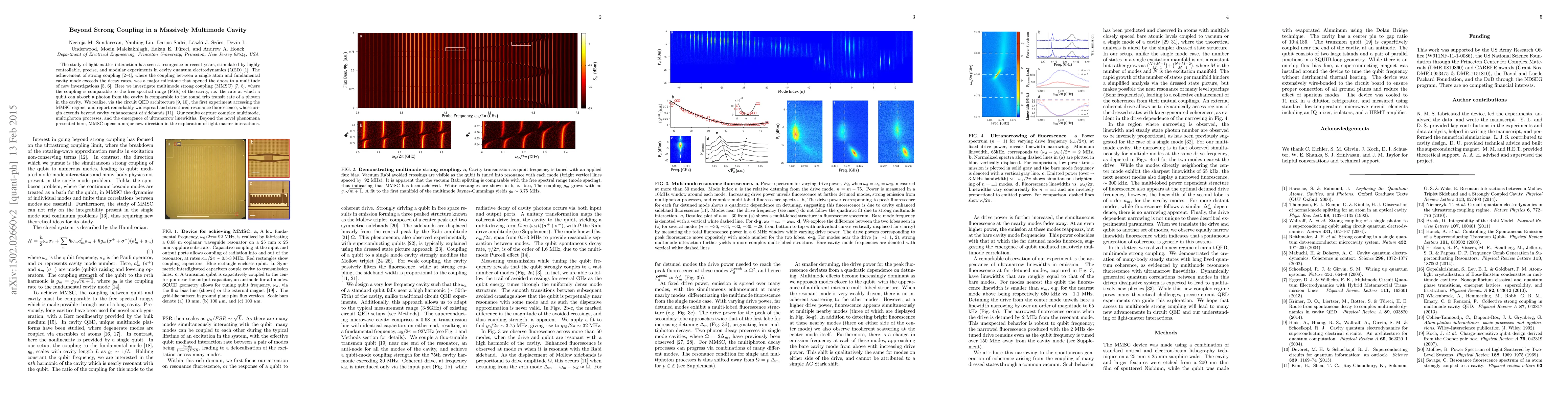 This paper explores multimode strong coupling in a cavity quantum electrodynamics system, demonstrating interactions beyond single-mode coupling where the coupling rate matches the cavity's free spectral range. The experiment reveals complex multiphoton processes and ultranarrow linewidths, marking a significant advancement in light-matter interaction studies.