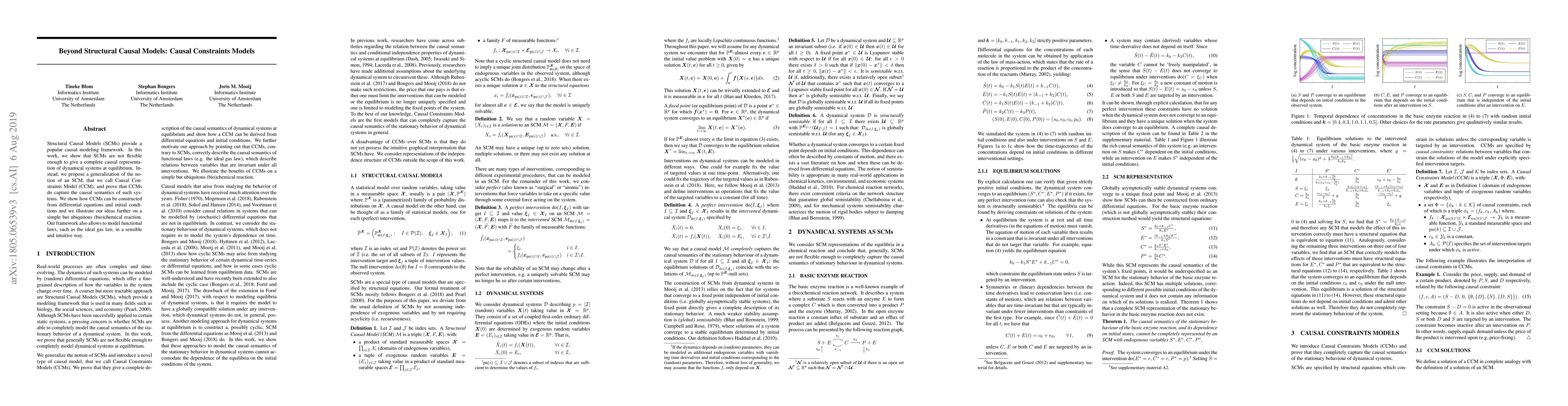 This paper proposes Causal Constraints Models (CCM) as a generalization of Structural Causal Models (SCM) to better represent the causal semantics of dynamical systems at equilibrium. CCMs can be constructed from differential equations and initial conditions, and are shown to effectively model functional laws like the ideal gas law.