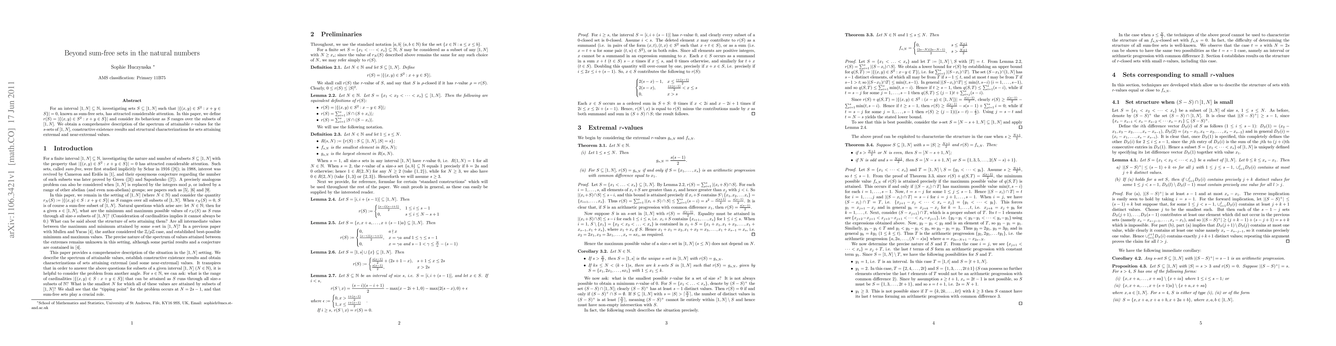 This paper investigates sum-free sets within intervals of natural numbers, defining r(S) as the count of pairs (x,y) in S^2 where x+y is also in S. It provides a detailed analysis of the attainable r-values, existence results, and structural properties of sets achieving extremal and near-extremal r-values.