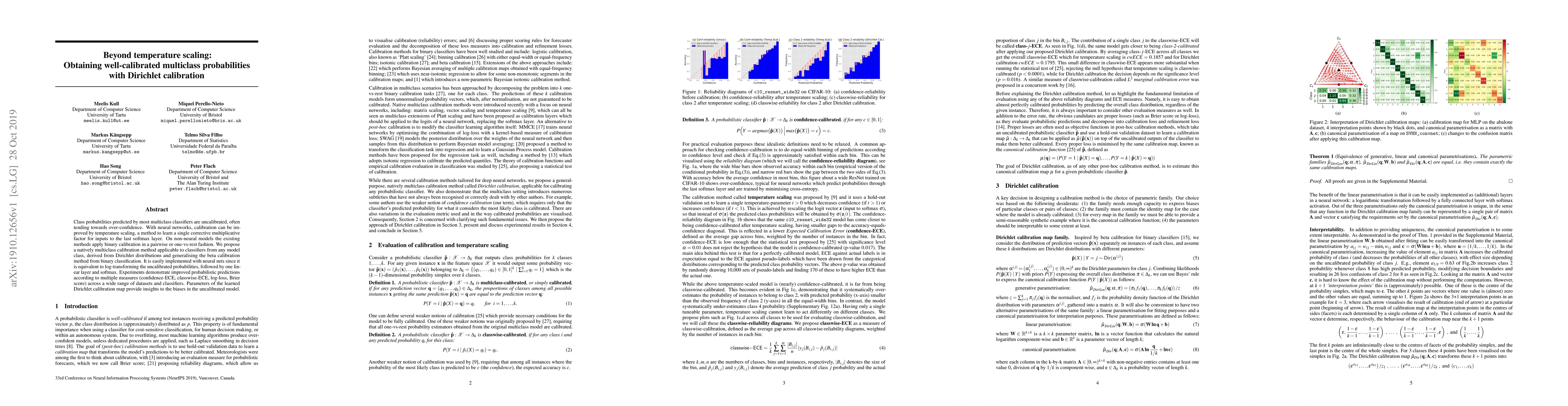 This paper proposes a novel multiclass calibration method based on Dirichlet distributions to improve the calibration of class probabilities in classifiers, surpassing the limitations of temperature scaling. The method generalizes the beta calibration technique and shows superior performance across various metrics on diverse datasets and models.