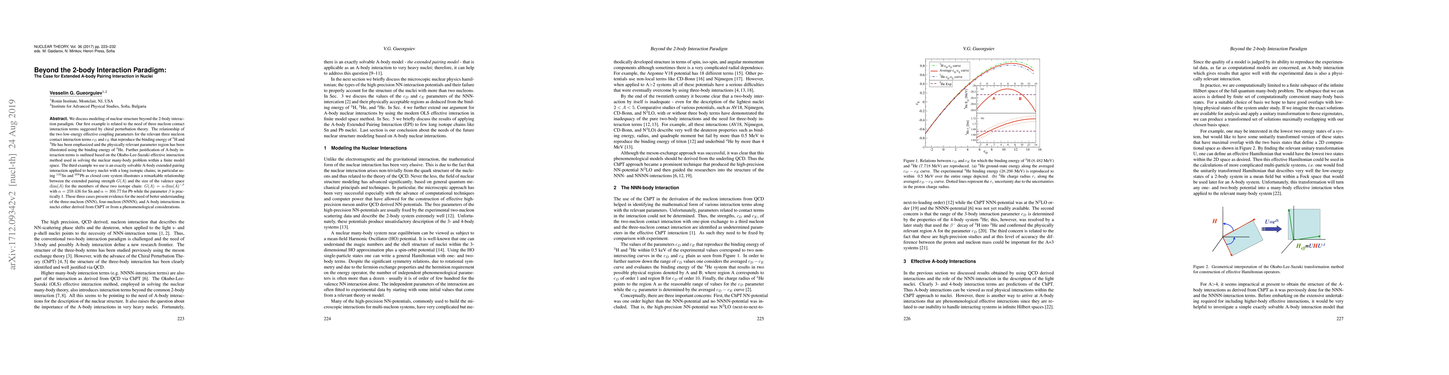 We discuss modeling of nuclear structure beyond the 2-body interaction paradigm. Our first example is related to the need of three nucleon contact interaction terms suggested by chiral perturbation theory. The relationship of the two low-energy effective coupling parameters for the relevant three nucleon contact interaction terms $c_D$ and $c_E$ that reproduce the binding energy of $^3$H and $^3$He has been emphasized and the physically relevant parameter region has been illustrated using the binding energy of $^4$He. Further justification of A-body interaction terms is outlined based on the Okubo-Lee-Suzuki effective interaction method used in solving the nuclear many-body problem within a finite model space. The third example we use is an exactly solvable A-body extended pairing interaction applied to heavy nuclei with a long isotopic chains, in particular using $^{132}$Sn and $^{208}$Pb as closed core system illustrates a remarkable relationship between the extended pairing strength $G(A)$ and the size of the valence space $\dim(A)$ for the members of these two isotope chain: $G(A)=\alpha\dim(A)^{-\beta}$ with $\alpha=259.436$ for Sn and $\alpha=366.77$ for Pb while the parameter $\beta$ is practically 1. These three cases present evidence for the need of better understanding of the three-nucleon (NNN), four-nucleon (NNNN), and A-body interactions in nuclei either derived from ChPT or from a phenomenological considerations.