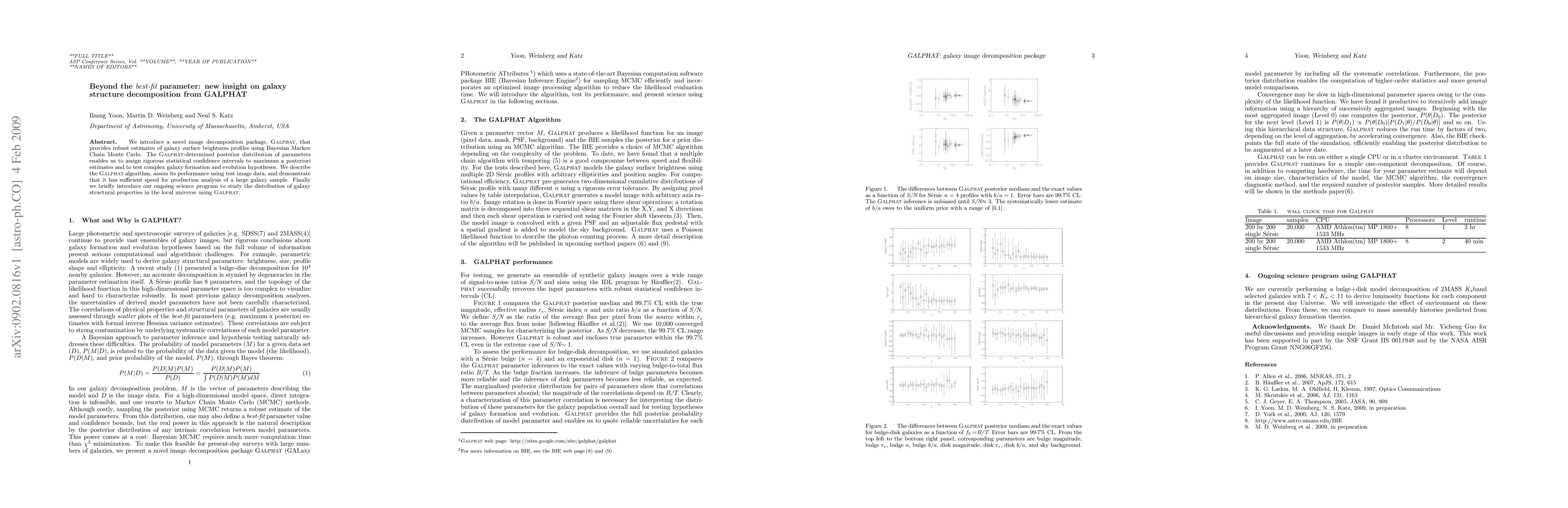 We introduce a novel image decomposition package, GALPHAT, that provides robust estimates of galaxy surface brightness profiles using Bayesian Markov Chain Monte Carlo. The GALPHAT-determined posterior distribution of parameters enables us to assign rigorous statistical confidence intervals to maximum a posteriori estimates and to test complex galaxy formation and evolution hypotheses. We describe the GALPHAT algorithm, assess its performance using test image data, and demonstrate that it has sufficient speed for production analysis of a large galaxy sample. Finally we briefly introduce our ongoing science program to study the distribution of galaxy structural properties in the local universe using GALPHAT.