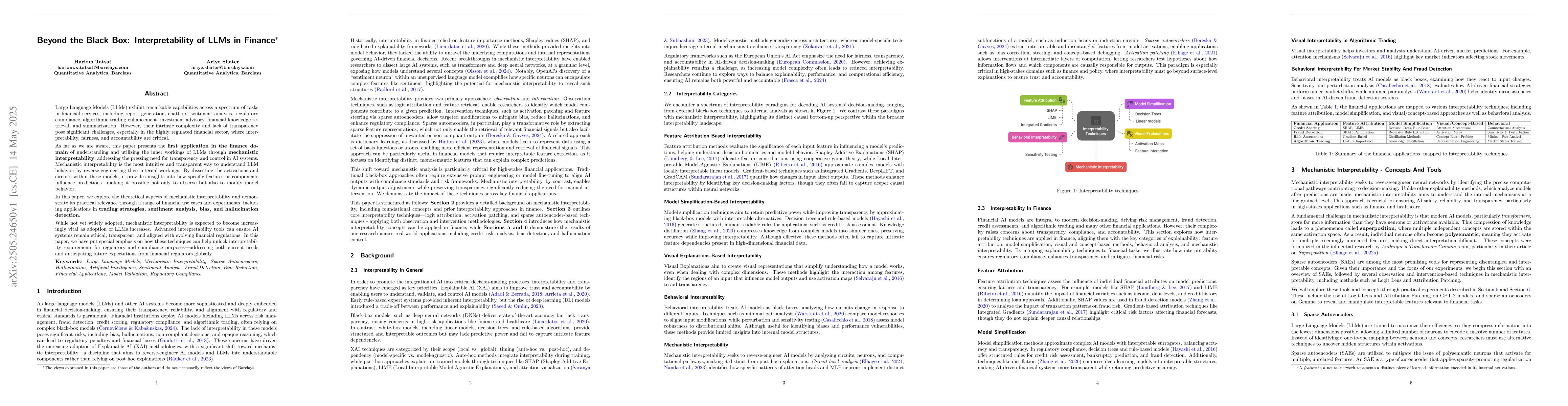 The paper explores the theoretical aspects of mechanistic interpretability and demonstrates its practical relevance through financial use cases and experiments, including trading strategies, sentiment analysis, bias, and hallucination detection.