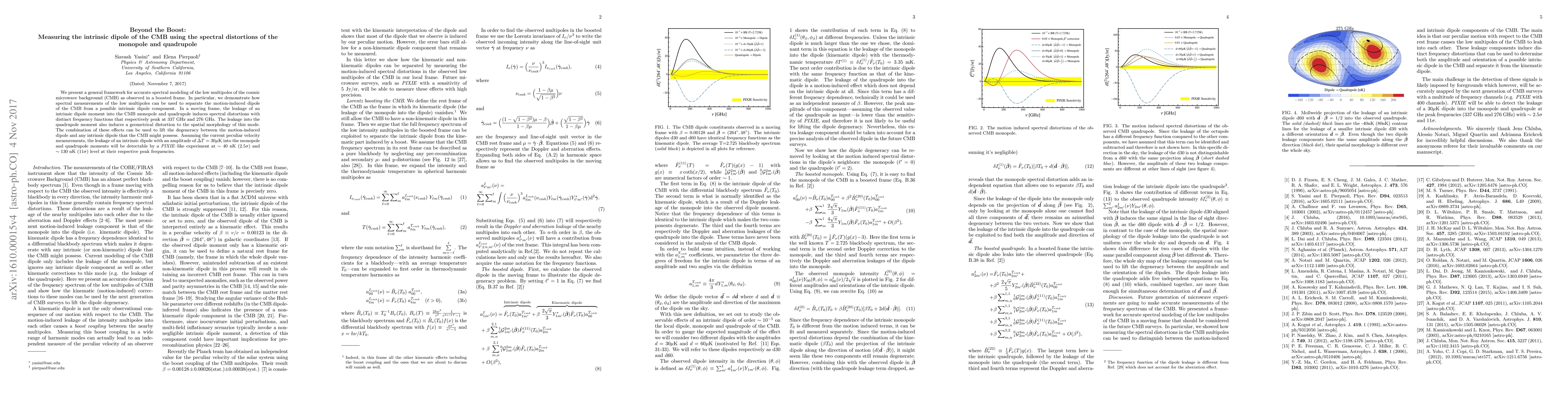 We present a general framework for accurate spectral modeling of the low multipoles of the cosmic microwave background (CMB) as observed in a boosted frame. In particular, we demonstrate how spectral measurements of the low multipoles can be used to separate the motion-induced dipole of the CMB from a possible intrinsic dipole component. In a moving frame, the leakage of an intrinsic dipole moment into the CMB monopole and quadrupole induces spectral distortions with distinct frequency functions that respectively peak at 337 GHz and 276 GHz. The leakage into the quadrupole moment also induces a geometrical distortion to the spatial morphology of this mode. The combination of these effects can be used to lift the degeneracy between the motion-induced dipole and any intrinsic dipole that the CMB might possess. Assuming the current peculiar velocity measurements, the leakage of an intrinsic dipole with an amplitude of $\Delta T = 30\mu$K into the monopole and quadrupole moments will be detectable by a PIXIE--like experiment at $\sim 40~$nK ($2.5\sigma$) and $\sim 130~$nK ($11\sigma$) level at their respective peak frequencies.
