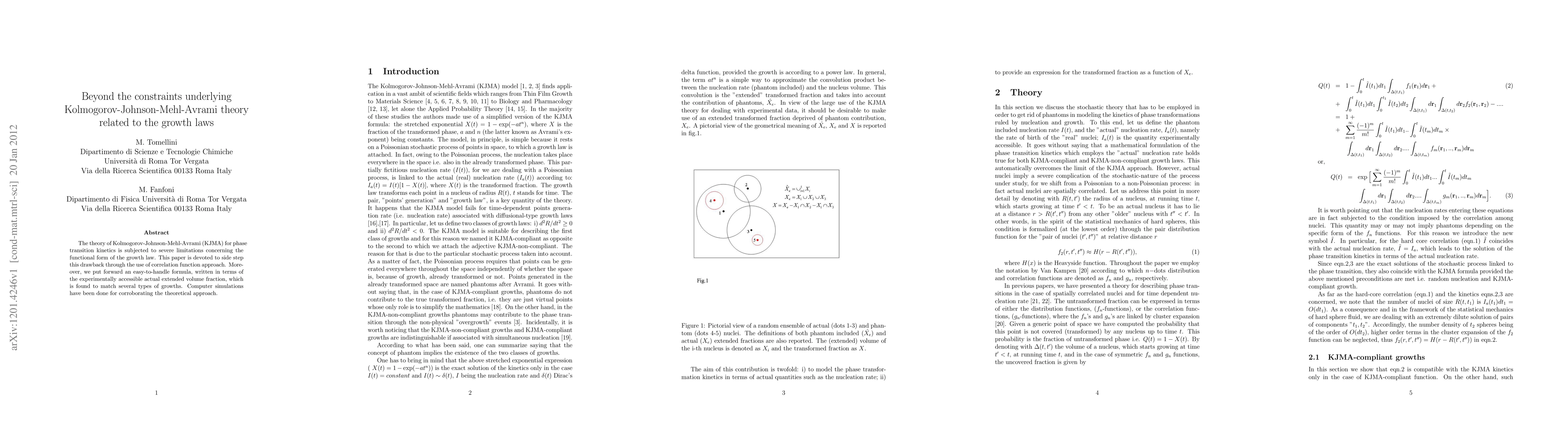 The theory of Kolmogorov-Johnson-Mehl-Avrami (KJMA) for phase transition kinetics is subjected to severe limitations concerning the functional form of the growth law. This paper is devoted to side step this drawback through the use of correlation function approach. Moreover, we put forward an easy-to-handle formula, written in terms of the experimentally accessible actual extended volume fraction, which is found to match several types of growths. Computer simulations have been done for corroborating the theoretical approach.