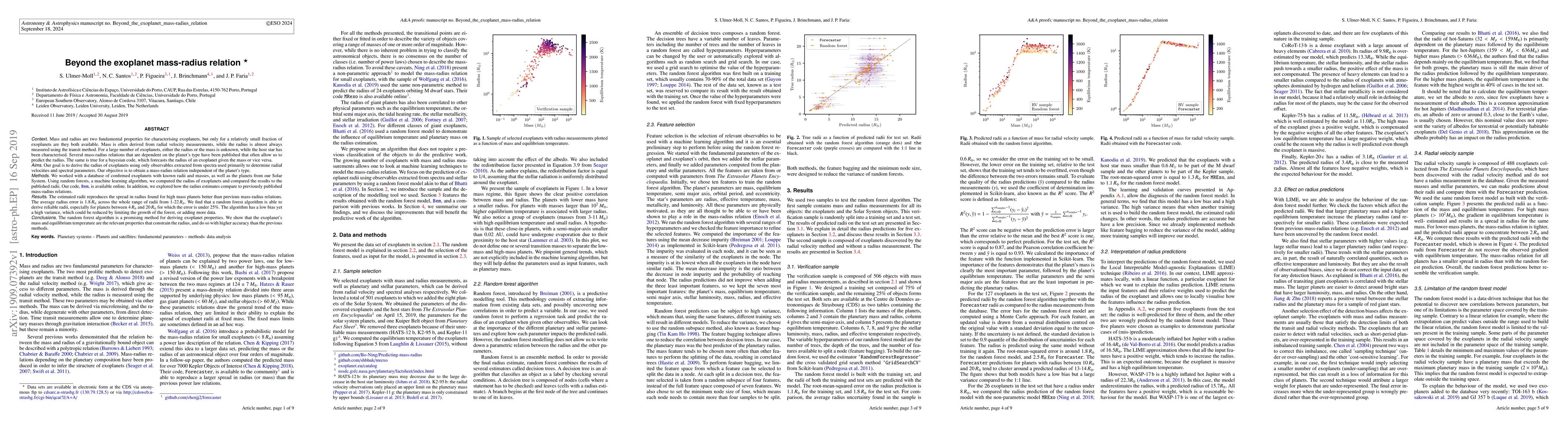 A random forest regressor was used to predict exoplanet radii from a set of input features.