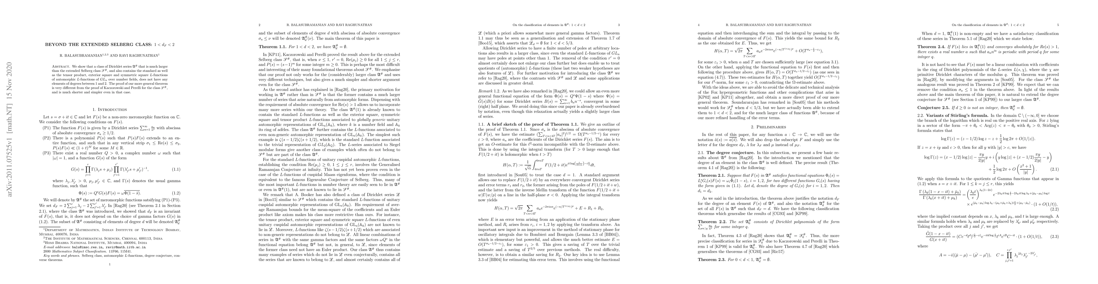 This paper demonstrates that a broader class of Dirichlet series, ${\mathfrak{A}}^{\#}$, which encompasses various $L$-functions, contains no elements of degrees between $1$ and $2$. The proof is notably simpler than previous methods used for the extended Selberg class.