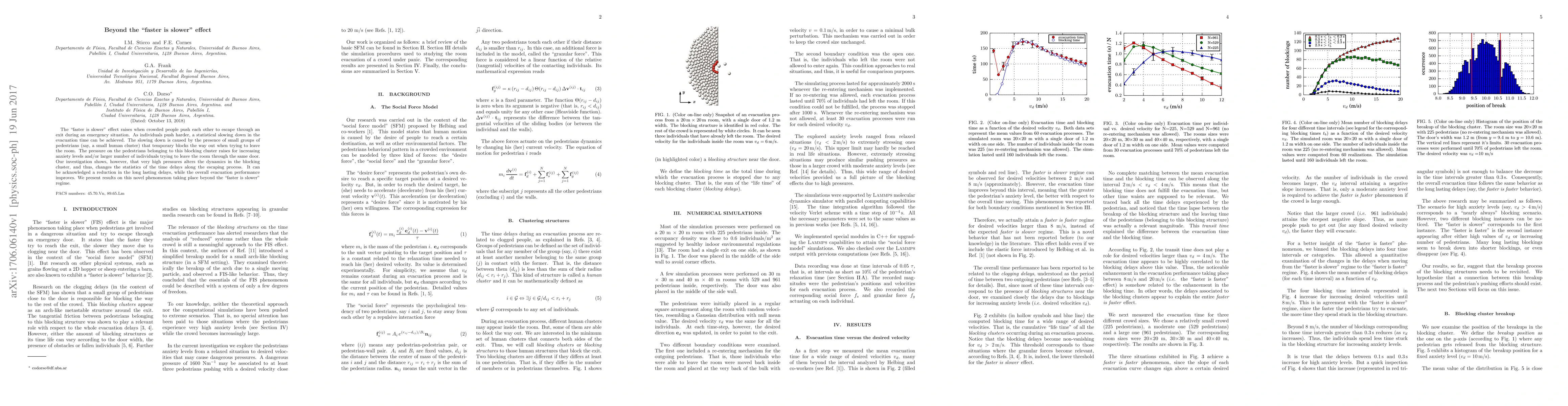 The "faster is slower" effect raises when crowded people push each other to escape through an exit during an emergency situation. As individuals push harder, a statistical slowing down in the evacuation time can be achieved. The slowing down is caused by the presence of small groups of pedestrians (say, a small human cluster) that temporary blocks the way out when trying to leave the room. The pressure on the pedestrians belonging to this blocking cluster raises for increasing anxiety levels and/or larger number of individuals trying to leave the room through the same door. Our investigation shows, however, that very high pressures alters the dynamics in the blocking cluster, and thus, changes the statistics of the time delays along the escaping process. It can be acknowledged a reduction in the long lasting delays, while the overall evacuation performance improves. We present results on this novel phenomenon taking place beyond the "faster is slower" regime.