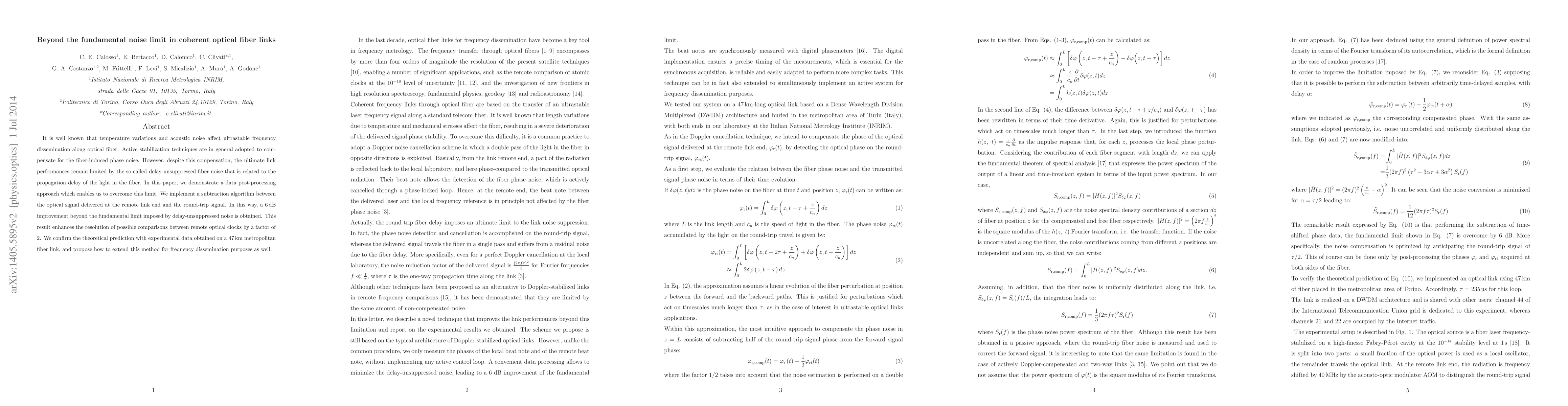 This paper presents a data post-processing technique to surpass the fundamental noise limit in coherent optical fiber links, achieving a 6 dB improvement by subtracting the round-trip signal from the optical signal at the link's end, thereby doubling the resolution for remote optical clock comparisons. Experimental validation on a 47 km fiber link confirms the theoretical predictions and suggests its application for frequency dissemination.