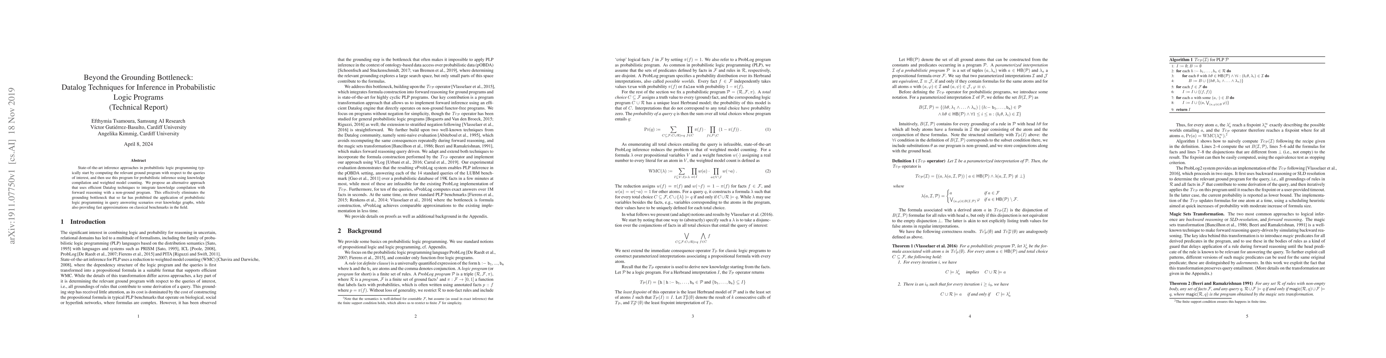 State-of-the-art inference approaches in probabilistic logic programming typically start by computing the relevant ground program with respect to the queries of interest, and then use this program for probabilistic inference using knowledge compilation and weighted model counting. We propose an alternative approach that uses efficient Datalog techniques to integrate knowledge compilation with forward reasoning with a non-ground program. This effectively eliminates the grounding bottleneck that so far has prohibited the application of probabilistic logic programming in query answering scenarios over knowledge graphs, while also providing fast approximations on classical benchmarks in the field.