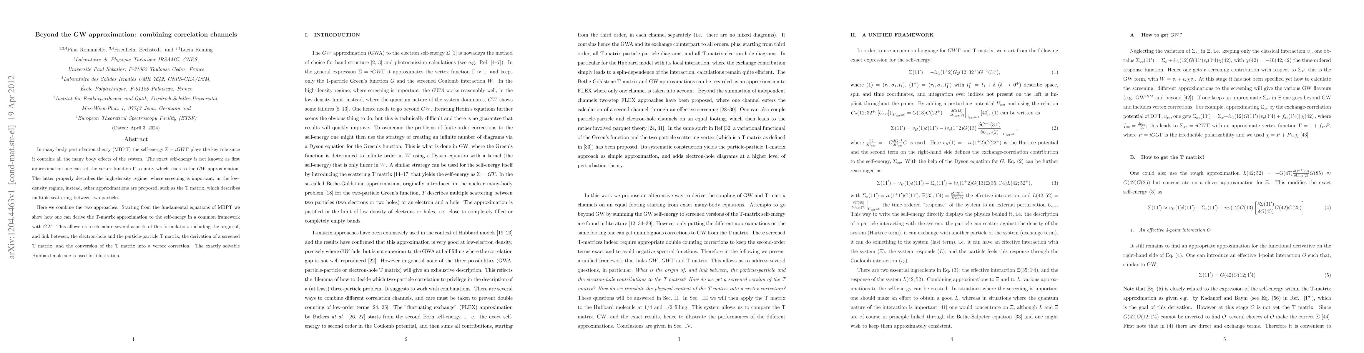 This paper combines the GW approximation and the T-matrix approach in many-body perturbation theory to describe both high-density and low-density regimes. It derives the T-matrix approximation within the framework of GW, elucidating the relationship between electron-hole and particle-particle T matrices and converting the T matrix into a vertex correction.
