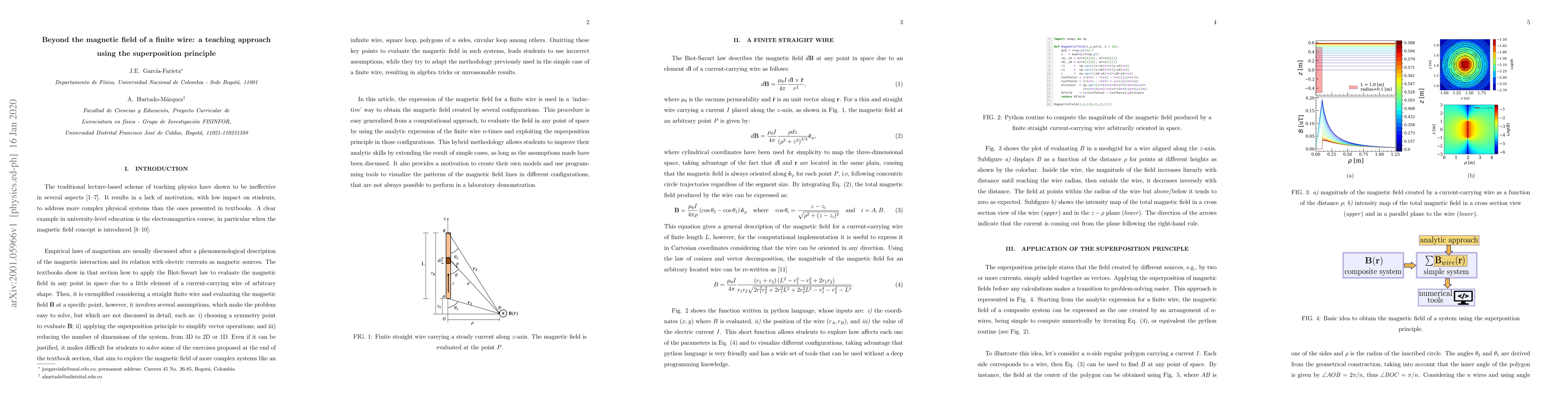 This paper introduces a teaching methodology using the superposition principle to evaluate magnetic fields created by multiple finite current-carrying wires in various geometries, enhancing students' analytical and computational skills in electromagnetism. The approach combines practical examples with visualization techniques to tackle complex magnetic field problems.