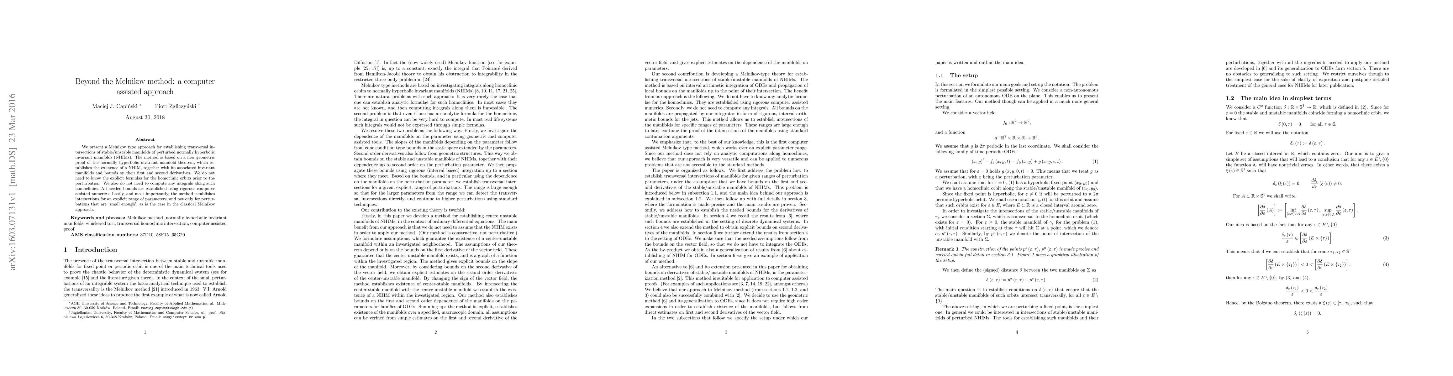 This paper introduces a novel computer-assisted method for identifying transversal intersections of stable/unstable manifolds of perturbed normally hyperbolic invariant manifolds (NHIMs), eliminating the need for explicit homoclinic orbit formulas and integrals, and providing bounds through rigorous numerics. Unlike the classical Melnikov method, this approach establishes intersections for a specific range of parameter values.