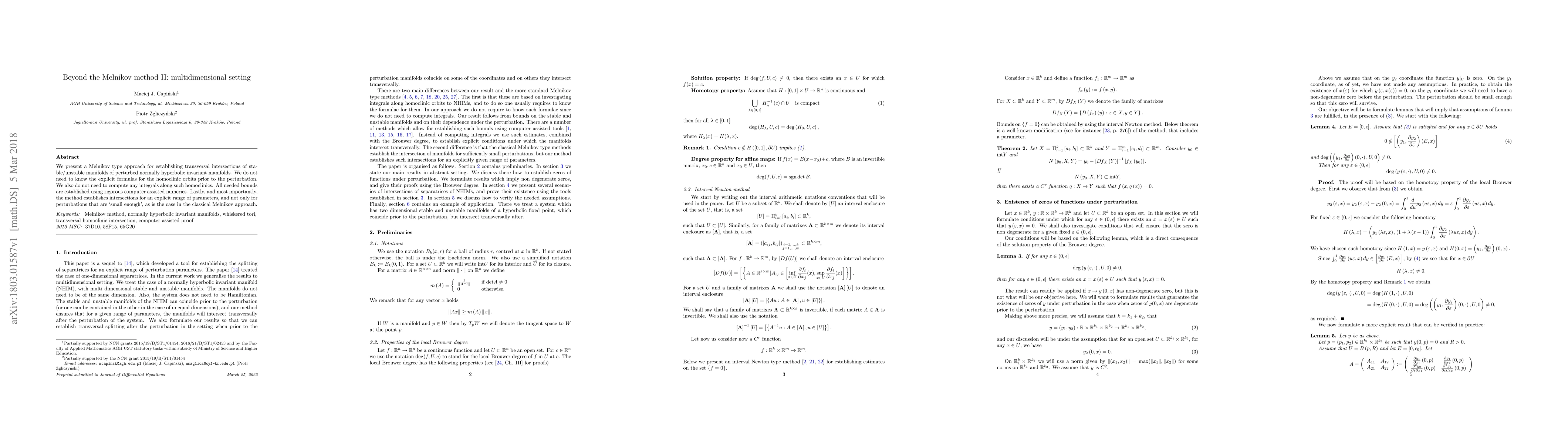 This paper introduces a Melnikov-type method for identifying transversal intersections in multidimensional systems, applicable to perturbed normally hyperbolic invariant manifolds without requiring explicit homoclinic orbit formulas or integrals. The method uses rigorous computer-assisted numerics to establish bounds and intersections for a specified range of parameters, extending beyond the limitations of the classical approach.