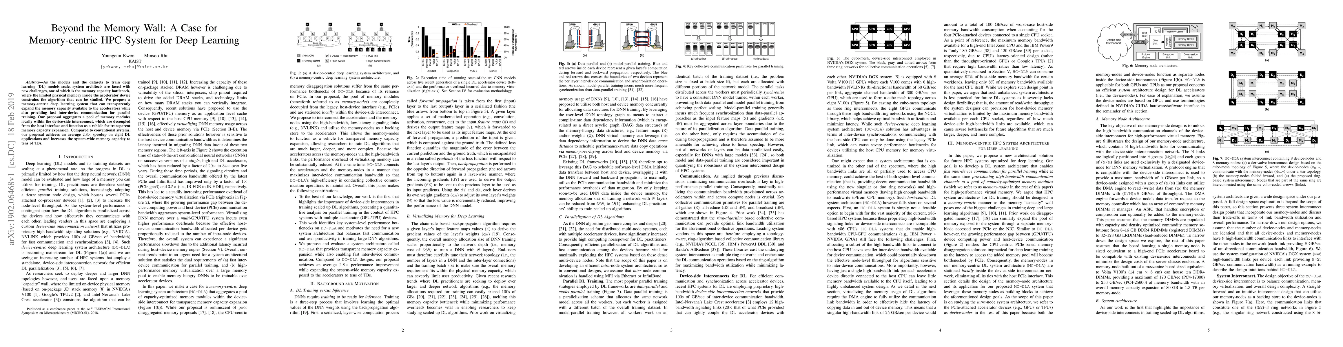 This paper proposes a memory-centric high-performance computing system to address the memory capacity bottleneck in deep learning. The proposed system transparently expands memory capacity and enhances inter-device communication, achieving an average 2.8x speedup on eight deep learning applications and increasing system-wide memory capacity to tens of TBs.