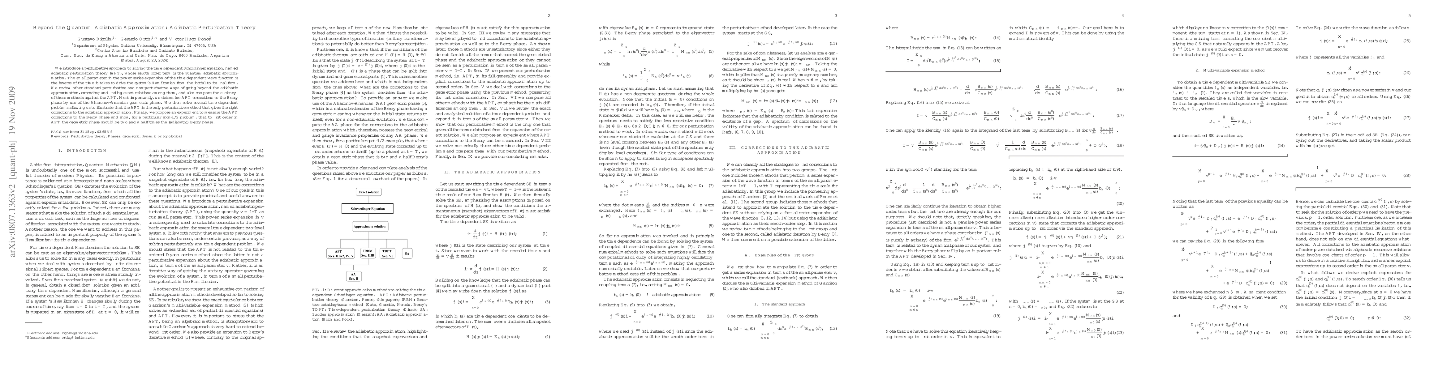 This paper introduces adiabatic perturbation theory (APT) as a perturbative approach to solving the time-dependent Schrödinger equation, extending beyond the quantum adiabatic approximation. APT provides corrections to the Berry phase, and the authors propose an experiment to measure these corrections, showing that to first order, the APT geometric phase is 2.5 times the adiabatic Berry phase.
