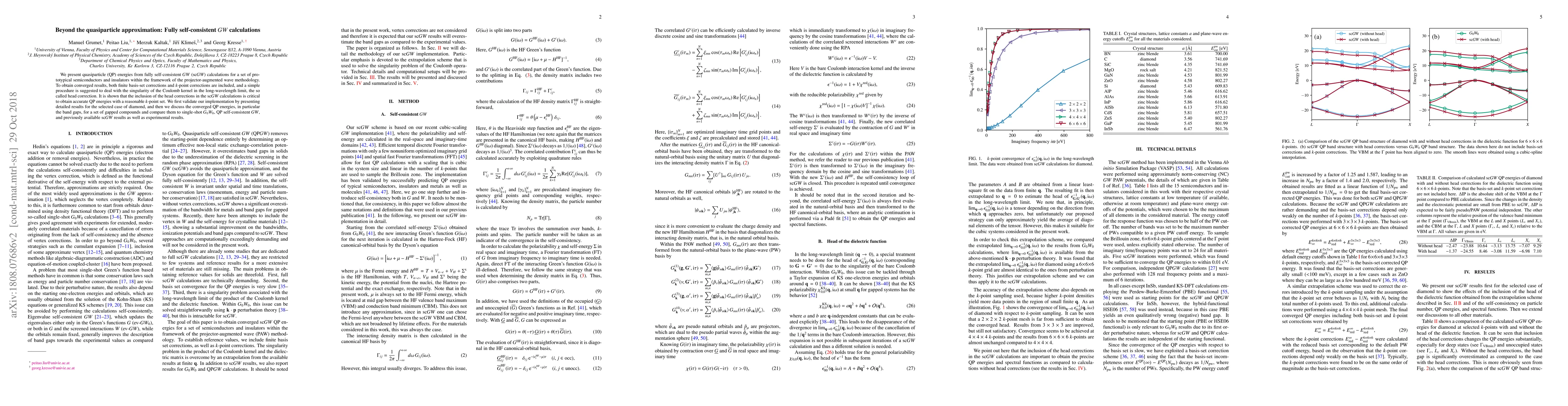 This paper presents fully self-consistent $GW$ (sc$GW$) calculations for quasiparticle energies in semiconductors and insulators, emphasizing the importance of head corrections for accurate results. The methodology is validated through detailed analysis of diamond and compared to other $GW$ approaches and experimental data.