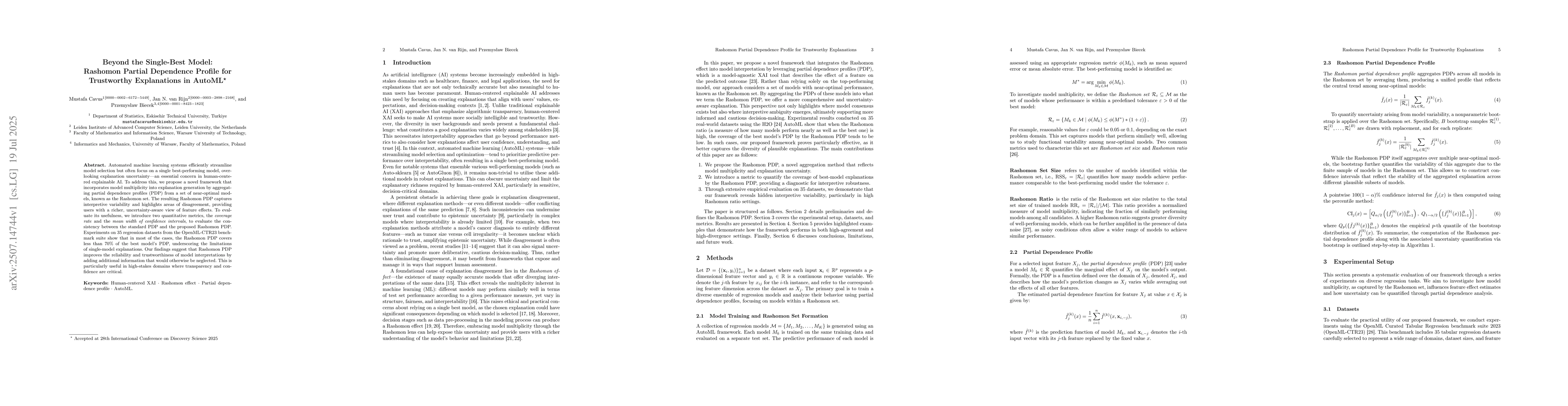 Automated machine learning systems efficiently streamline model selection but often focus on a single best-performing model, overlooking explanation uncertainty, an essential concern in human centered explainable AI. To address this, we propose a novel framework that incorporates model multiplicity into explanation generation by aggregating partial dependence profiles (PDP) from a set of near optimal models, known as the Rashomon set. The resulting Rashomon PDP captures interpretive variability and highlights areas of disagreement, providing users with a richer, uncertainty aware view of feature effects. To evaluate its usefulness, we introduce two quantitative metrics, the coverage rate and the mean width of confidence intervals, to evaluate the consistency between the standard PDP and the proposed Rashomon PDP. Experiments on 35 regression datasets from the OpenML CTR23 benchmark suite show that in most cases, the Rashomon PDP covers less than 70% of the best model's PDP, underscoring the limitations of single model explanations. Our findings suggest that Rashomon PDP improves the reliability and trustworthiness of model interpretations by adding additional information that would otherwise be neglected. This is particularly useful in high stakes domains where transparency and confidence are critical.