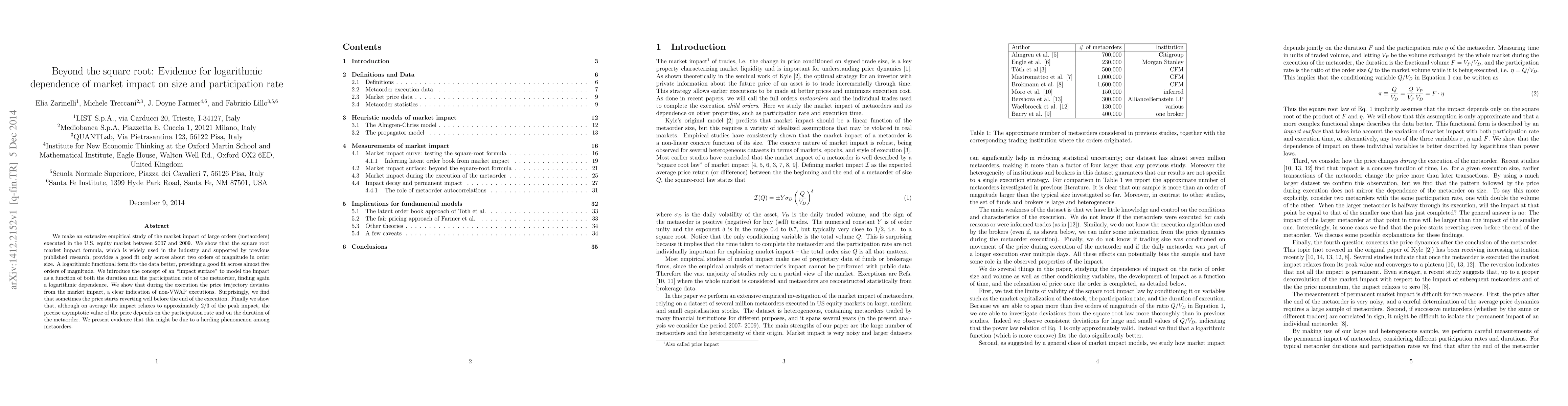 A study found that market impact in the U.S. equity market increases logarithmically with order size, not just square root-wise as previously thought. This has implications for understanding market behavior and potential herding phenomena among large orders.