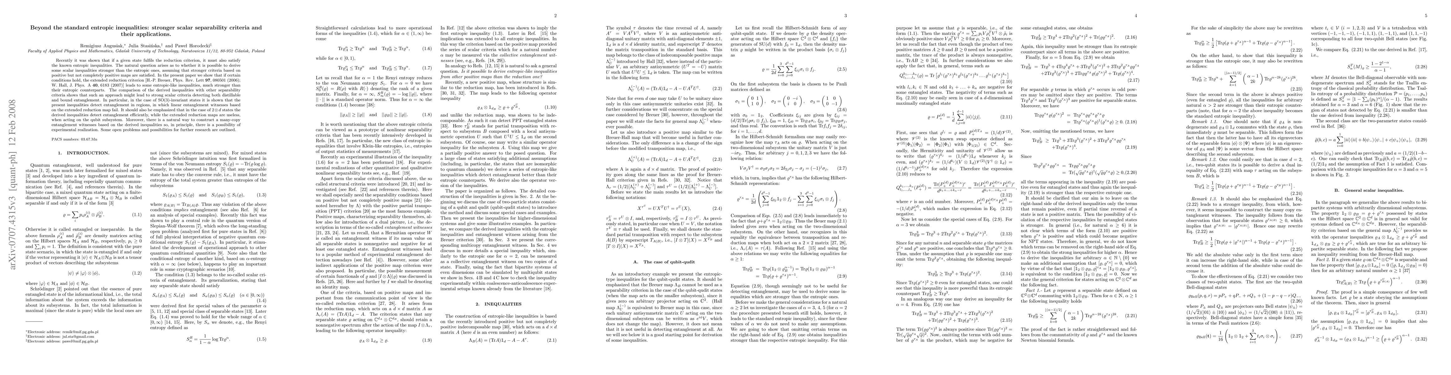 This paper investigates stronger scalar separability criteria beyond standard entropic inequalities, leveraging extended reduction criteria to derive more potent entropic-like inequalities. These new criteria effectively detect entanglement in areas where traditional methods fail, particularly for SO(3)-invariant states and $2\otimes N$ systems, and offer potential for experimental applications through many-copy entanglement witnesses.