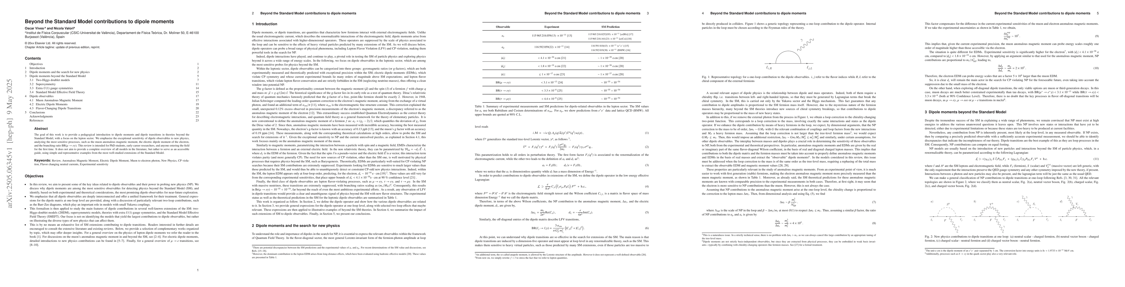 The paper offers a pedagogical introduction to dipole moments and transitions in theories beyond the Standard Model, focusing on lepton sector processes like the muon anomalous magnetic moment, electron electric dipole moment, and BR(μ → eγ).