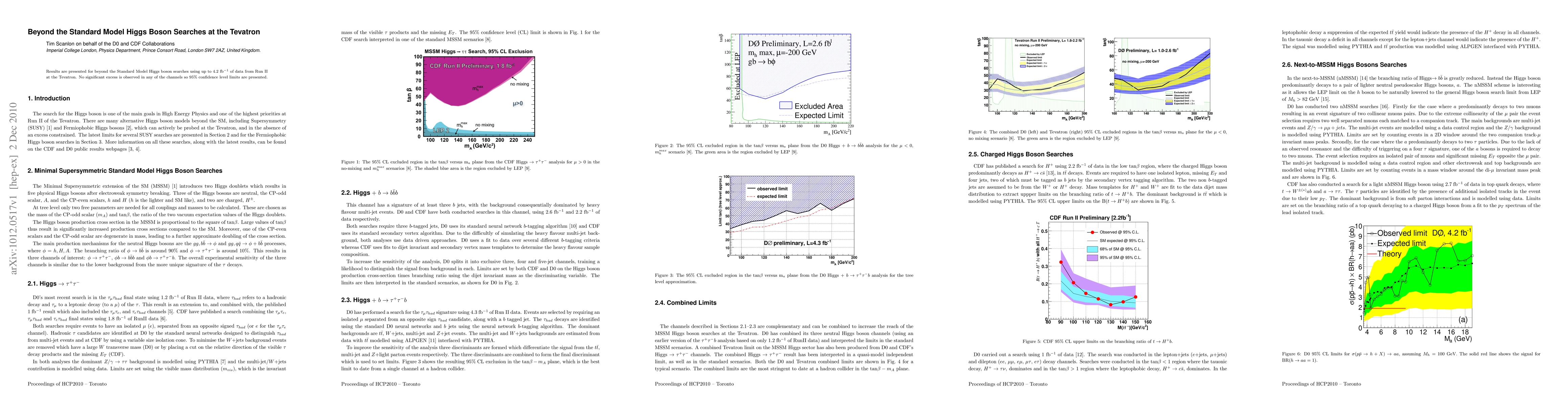 Results are presented for beyond the Standard Model Higgs boson searches using up to 4.2 fb-1 of data from Run II at the Tevatron. No significant excess is observed in any of the channels so 95% confidence level limits are presented.