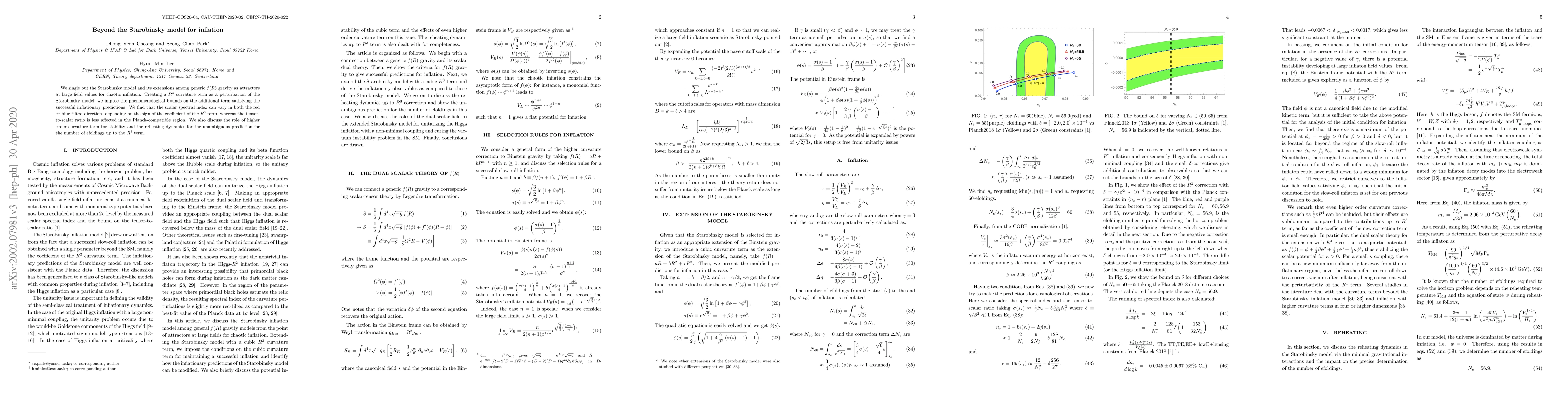 We single out the Starobinsky model and its extensions among generic $f(R)$ gravity as attractors at large field values for chaotic inflation. Treating a $R^3$ curvature term as a perturbation of the Starobinsky model, we impose the phenomenological bounds on the additional term satisfying the successful inflationary predictions. We find that the scalar spectral index can vary in both the red or blue tilted direction, depending on the sign of the coefficient of the $R^3$ term, whereas the tensor-to-scalar ratio is less affected in the Planck-compatible region. We also discuss the role of higher order curvature term for stability and the reheating dynamics for the unambiguous prediction for the number of efoldings up to the $R^3$ term.