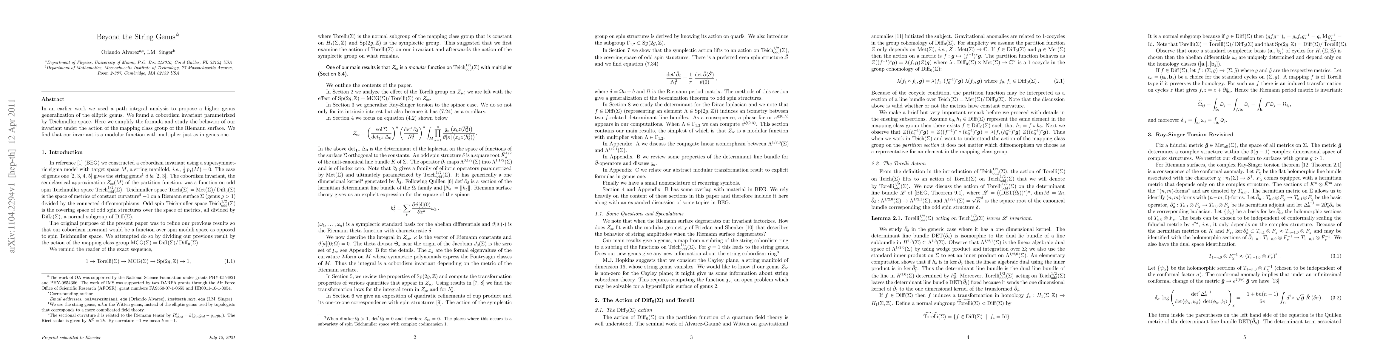 In an earlier work we used a path integral analysis to propose a higher genus generalization of the elliptic genus. We found a cobordism invariant parametrized by Teichmuller space. Here we simplify the formula and study the behavior of our invariant under the action of the mapping class group of the Riemann surface. We find that our invariant is a modular function with multiplier just as in genus one.