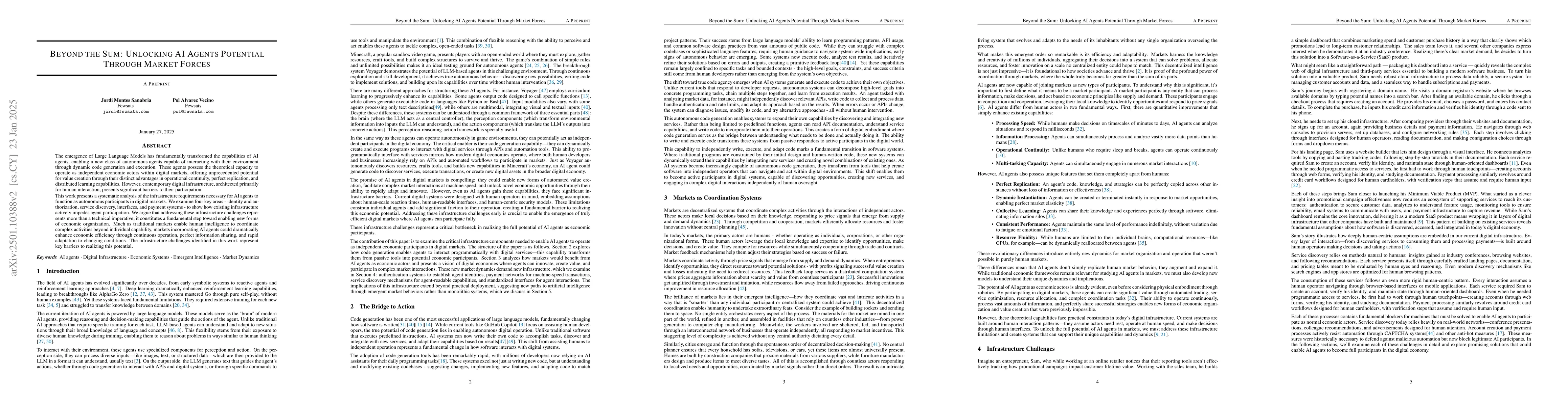 This paper explores the potential of AI agents enabled by Large Language Models to participate as independent economic actors in digital markets. It identifies key infrastructure challenges in identity, service discovery, interfaces, and payment systems that currently impede AI agents' integration and argues that addressing these issues is crucial for unlocking their economic potential and fostering new economic organizations.
