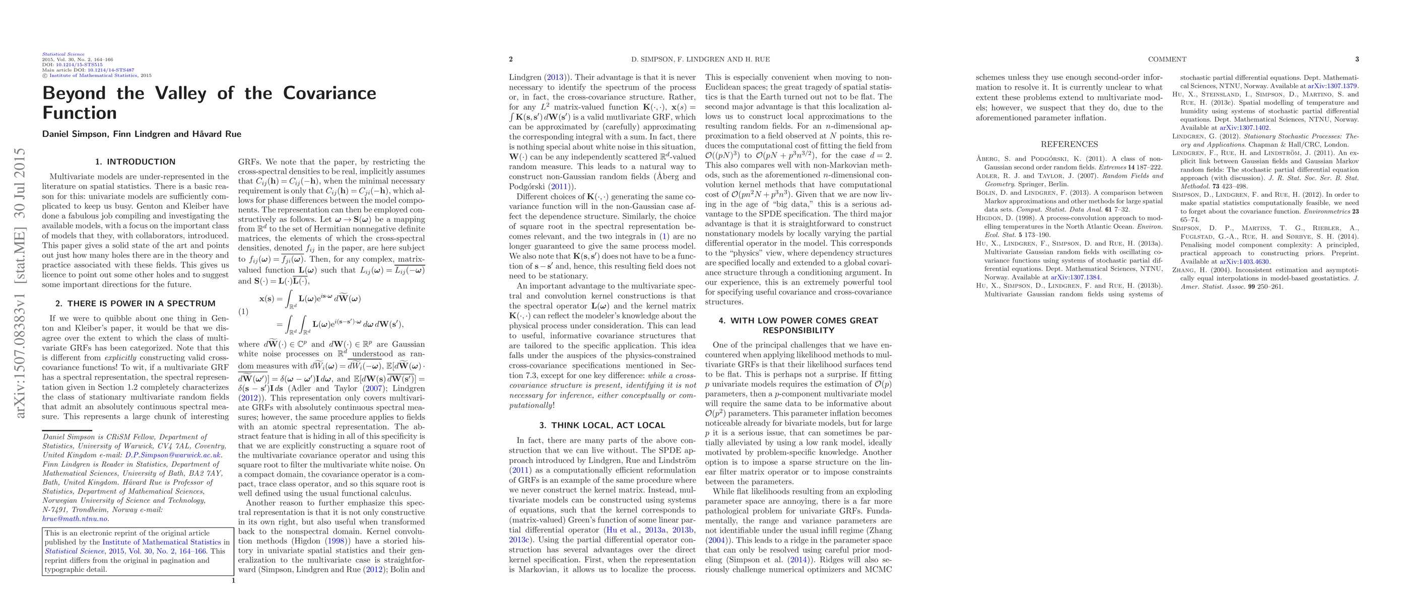 Discussion of "Cross-Covariance Functions for Multivariate Geostatistics" by Genton and Kleiber [arXiv:1507.08017].
