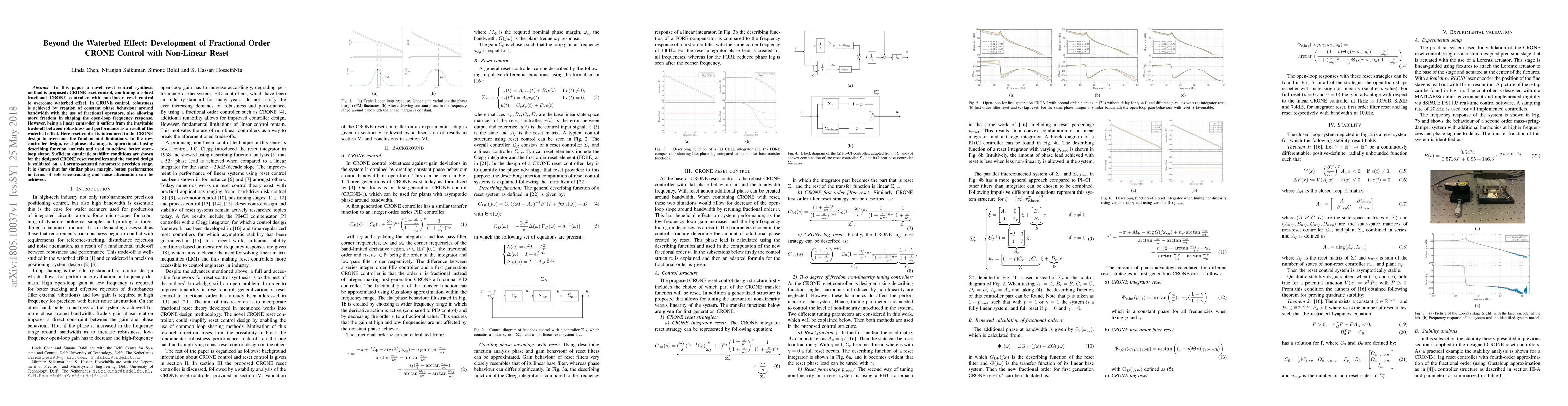 In this paper a novel reset control synthesis method is proposed: CRONE reset control, combining a robust fractional CRONE controller with non-linear reset control to overcome waterbed effect. In CRONE control, robustness is achieved by creation of constant phase behaviour around bandwidth with the use of fractional operators, also allowing more freedom in shaping the open-loop frequency response. However, being a linear controller it suffers from the inevitable trade-off between robustness and performance as a result of the waterbed effect. Here reset control is introduced in the CRONE design to overcome the fundamental limitations. In the new controller design, reset phase advantage is approximated using describing function analysis and used to achieve better open-loop shape. Sufficient quadratic stability conditions are shown for the designed CRONE reset controllers and the control design is validated on a Lorentz-actuated nanometre precision stage. It is shown that for similar phase margin, better performance in terms of reference-tracking and noise attenuation can be achieved.