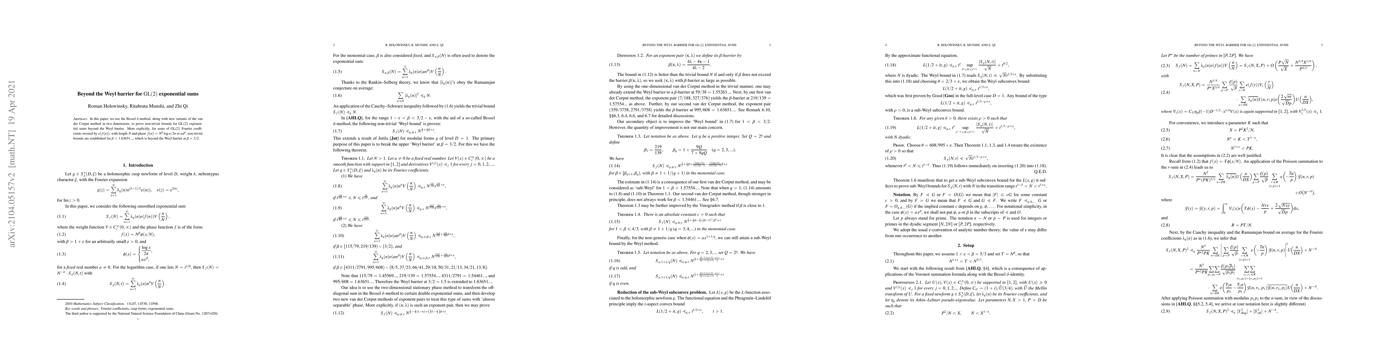 Researchers prove non-trivial bounds for GL(2) exponential sums beyond the Weyl barrier for certain phase functions, extending the limit of possible values to eta < 1.63651...