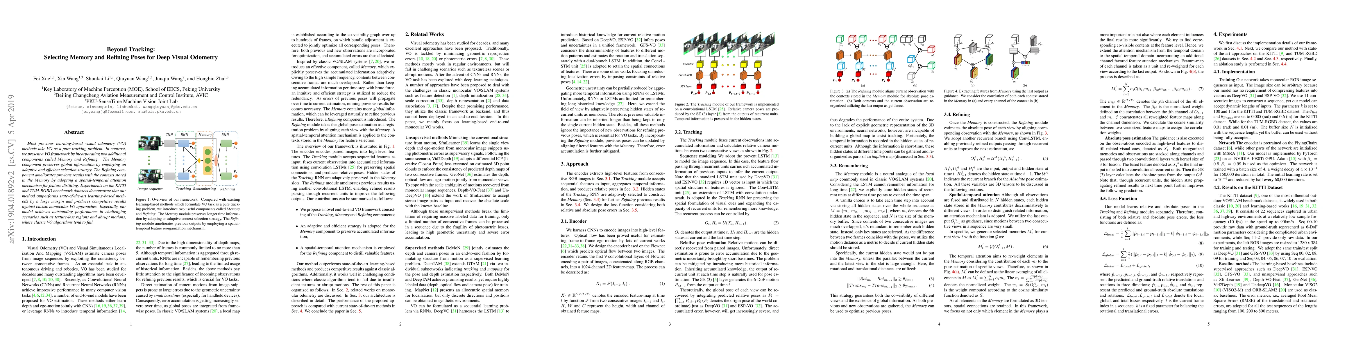 This paper proposes a novel visual odometry framework that goes beyond tracking by incorporating Memory and Refining components. The Memory component selects and preserves global information efficiently, while the Refining component enhances pose estimation using spatial-temporal attention. The method outperforms existing learning-based VO methods and performs well in challenging scenarios.