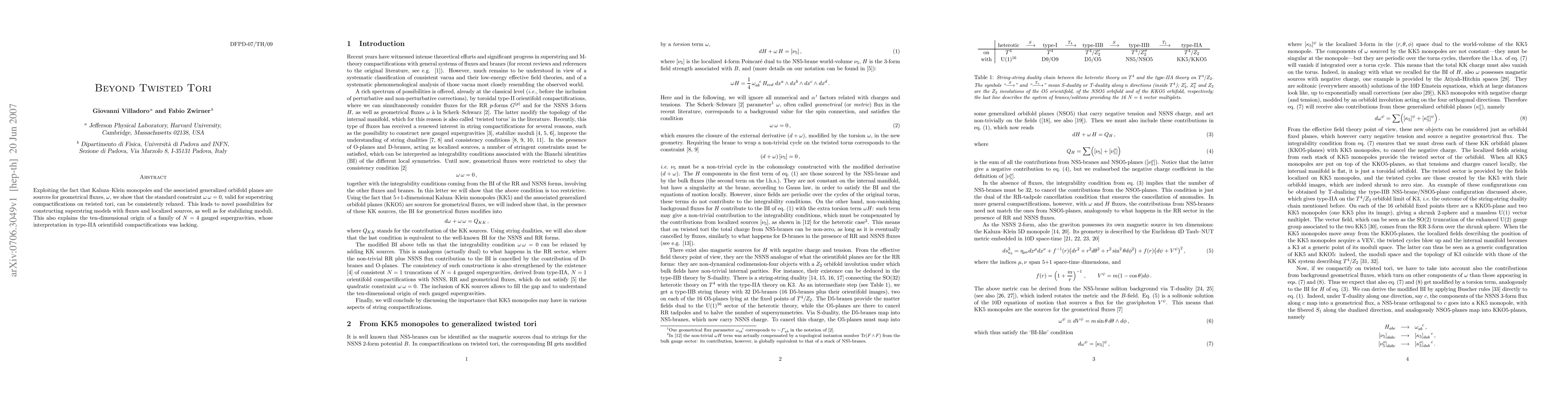 Exploiting the fact that Kaluza-Klein monopoles and the associated generalized orbifold planes are sources for geometrical fluxes, omega, we show that the standard constraint omega.omega=0, valid for superstring compactifications on twisted tori, can be consistently relaxed. This leads to novel possibilities for constructing superstring models with fluxes and localized sources, as well as for stabilizing moduli. This also explains the ten-dimensional origin of a family of N=4 gauged supergravities, whose interpretation in type-IIA orientifold compactifications was lacking.
