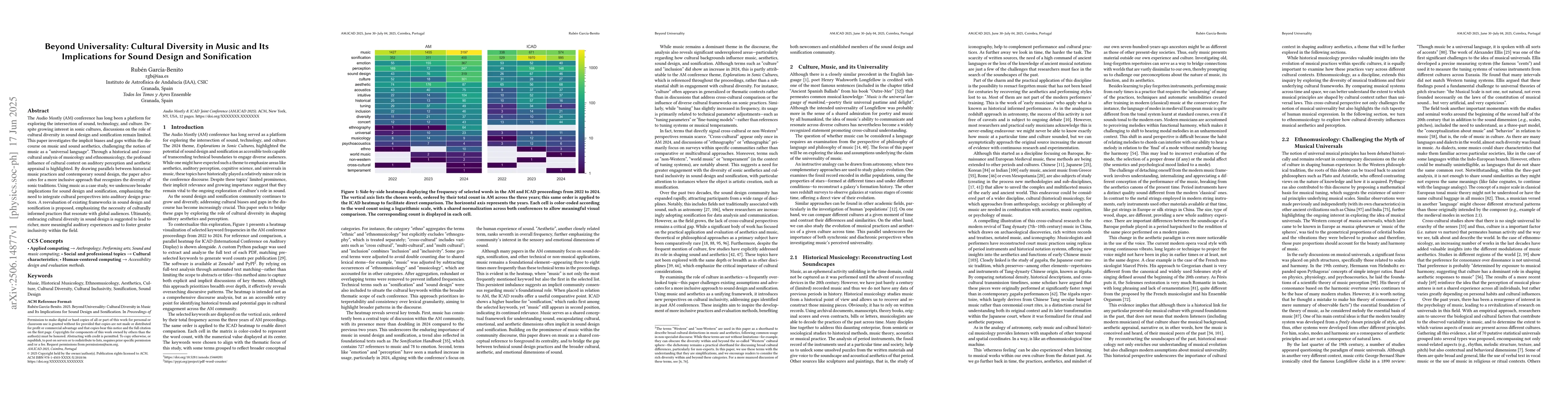 The Audio Mostly (AM) conference has long been a platform for exploring the intersection of sound, technology, and culture. Despite growing interest in sonic cultures, discussions on the role of cultural diversity in sound design and sonification remain limited. This paper investigates the implicit biases and gaps within the discourse on music and sound aesthetics, challenging the notion of music as a 'universal language'. Through a historical and cross-cultural analysis of musicology and ethnomusicology, the profound influence of cultural context on auditory perception and aesthetic appraisal is highlighted. By drawing parallels between historical music practices and contemporary sound design, the paper advocates for a more inclusive approach that recognizes the diversity of sonic traditions. Using music as a case study, we underscore broader implications for sound design and sonification, emphasizing the need to integrate cultural perspectives into auditory design practices. A reevaluation of existing frameworks in sound design and sonification is proposed, emphasizing the necessity of culturally informed practices that resonate with global audiences. Ultimately, embracing cultural diversity in sound design is suggested to lead to richer, more meaningful auditory experiences and to foster greater inclusivity within the field.