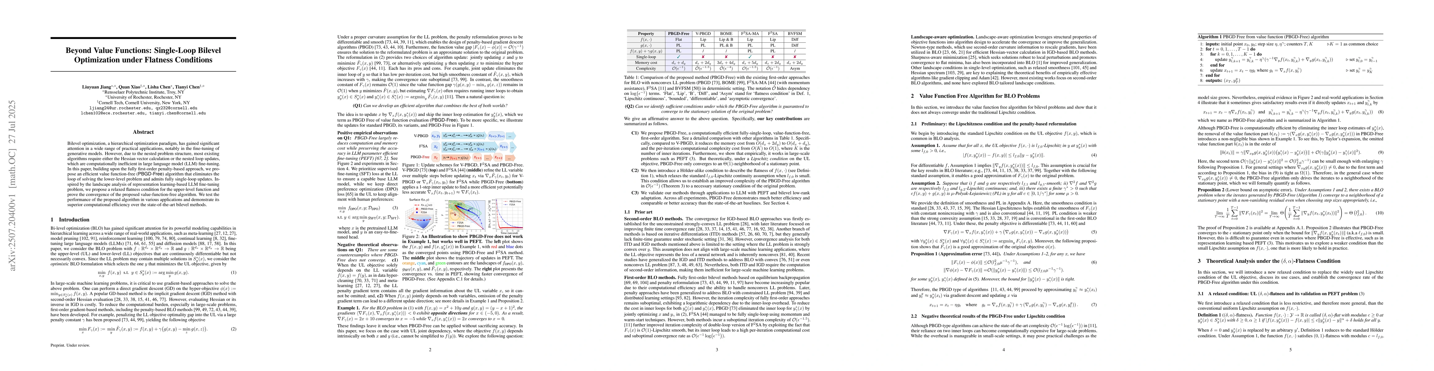 The paper proposes an efficient value function-free (PBGD-Free) algorithm for bilevel optimization, eliminating the nested loop updates and admitting fully single-loop operations. It builds upon a fully first-order penalty-based approach and introduces a relaxed flatness condition for the upper-level function, proving the convergence of the proposed algorithm.