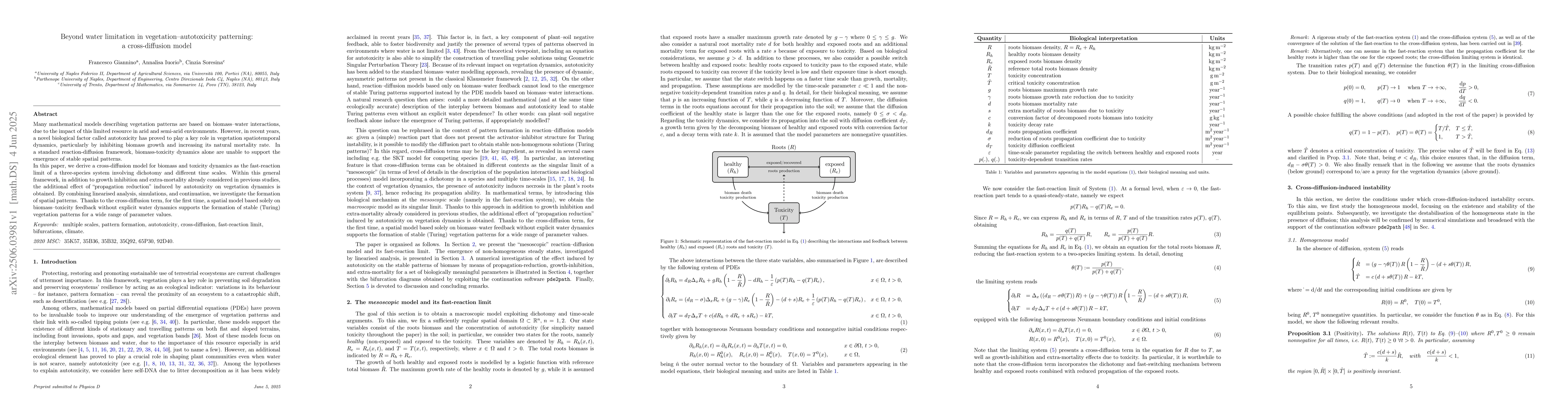 This work distinguishes itself by going beyond water limitation in vegetation patterning models, incorporating autotoxicity to explain spatiotemporal vegetation dynamics.