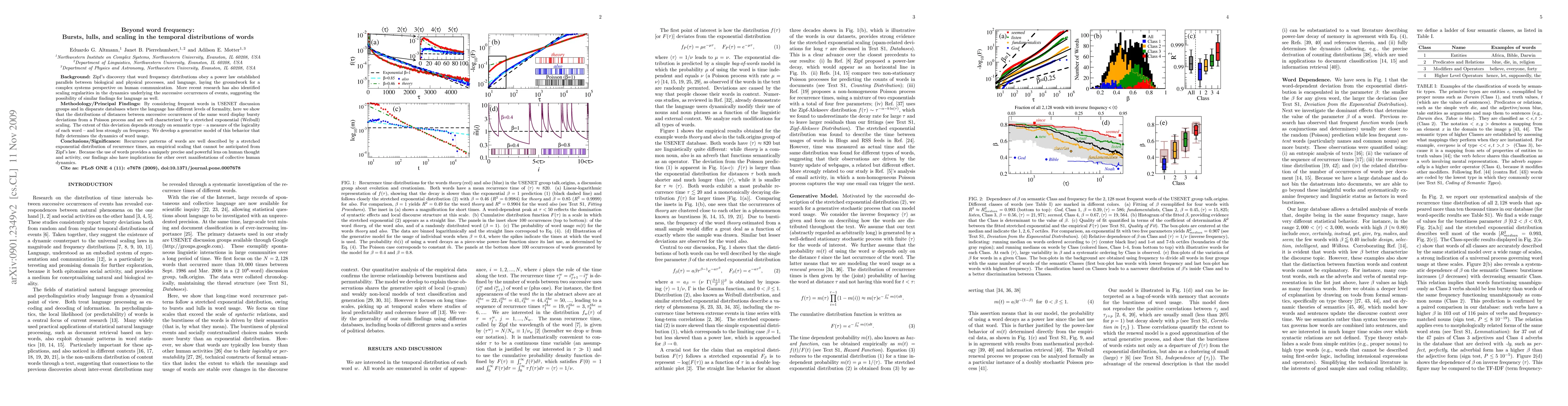 This paper explores the temporal distributions of word occurrences beyond simple frequency, revealing that word recurrence times follow a stretched exponential distribution characterized by bursts and lulls. The findings suggest that the extent of these deviations correlates more strongly with the semantic type of words than their frequency, offering new insights into the dynamics of human language and communication.