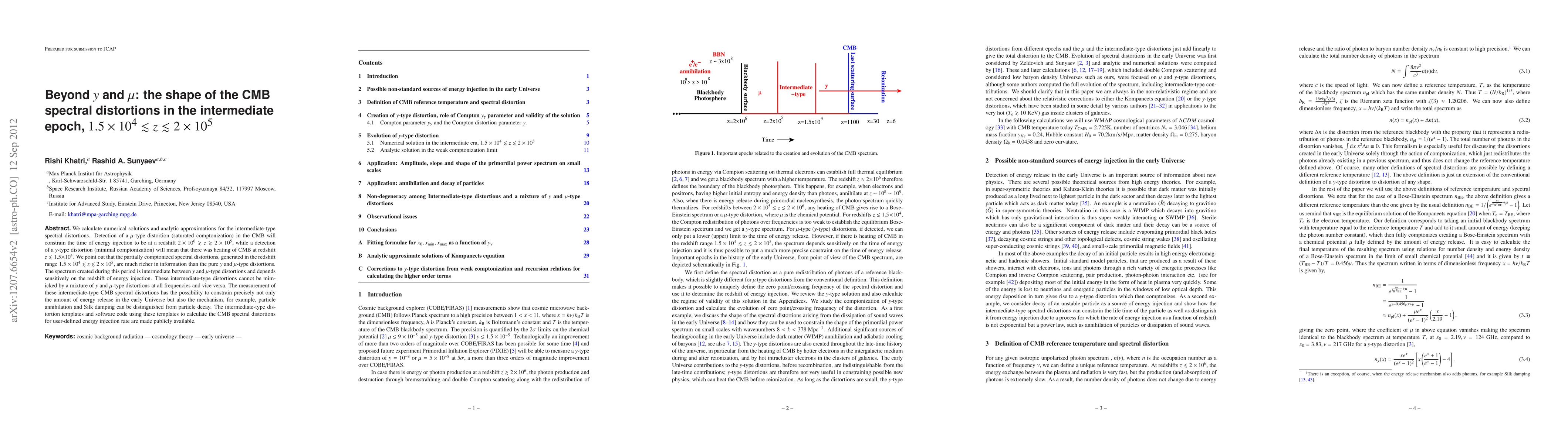 This paper investigates intermediate-type spectral distortions in the Cosmic Microwave Background (CMB) between redshifts 1.5x10^4 and 2x10^5, revealing that these distortions provide richer information than pure y or μ-type distortions. The study offers analytic approximations and numerical solutions, highlighting their potential to precisely constrain early Universe energy release mechanisms.