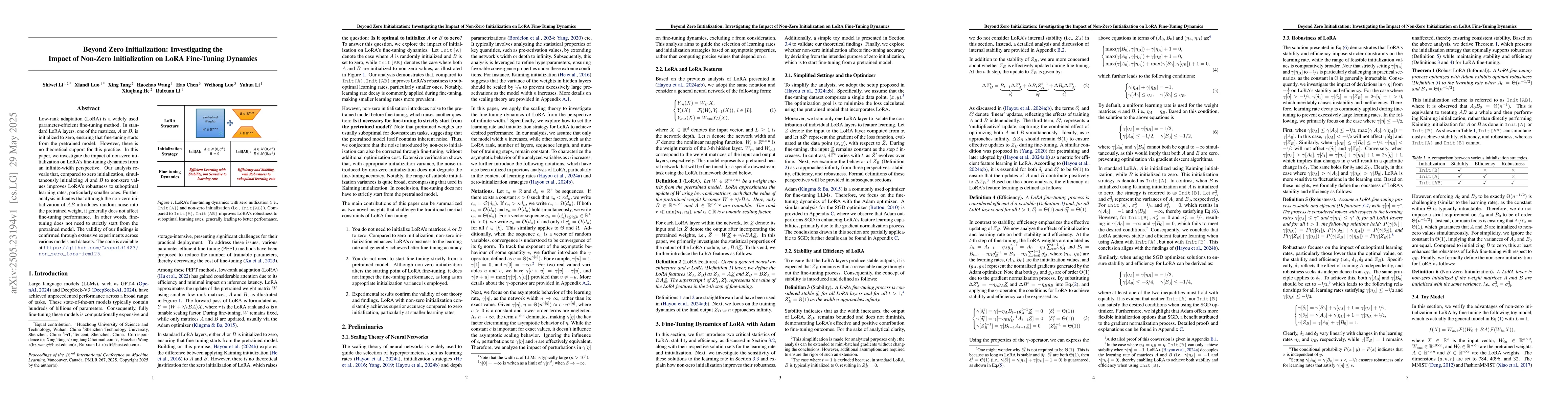 This research provides theoretical support for non-zero initialization in LoRA, enhancing understanding of fine-tuning dynamics and potentially improving practical applications in parameter-efficient methods.