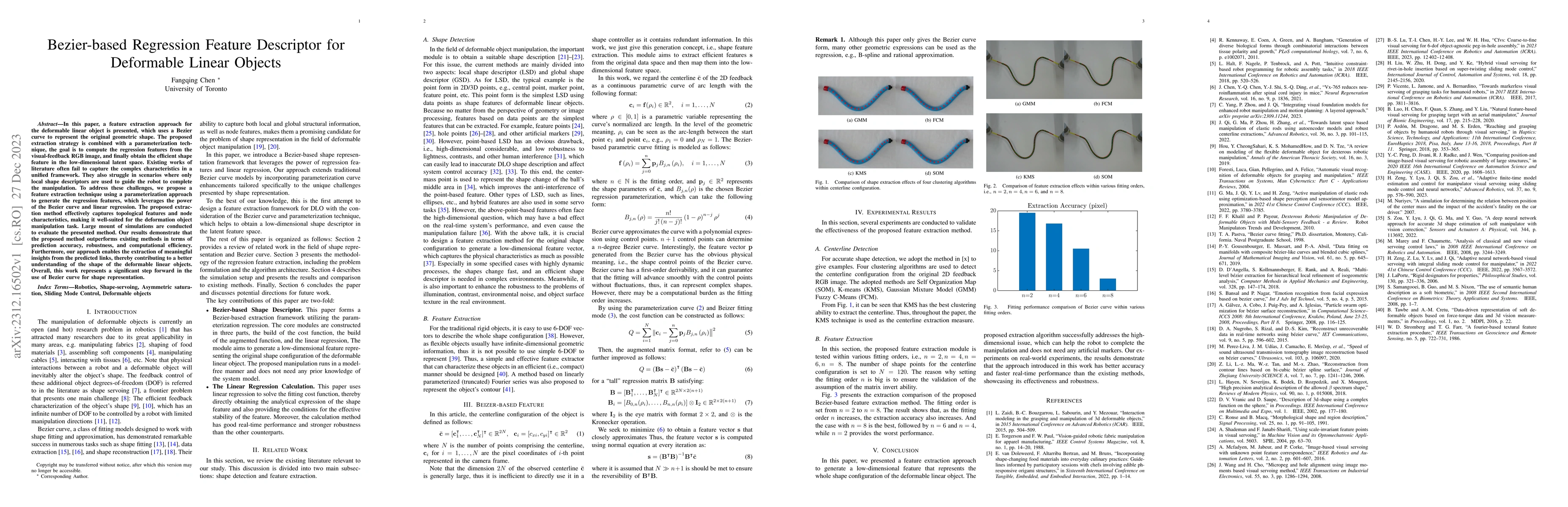 This paper introduces a Bezier-based regression feature descriptor for extracting shape features from deformable linear objects, combining Bezier curves with parameterization and linear regression to achieve efficient, accurate, and robust shape representation. The method outperforms existing techniques in prediction accuracy and computational efficiency, offering valuable insights into object deformation.