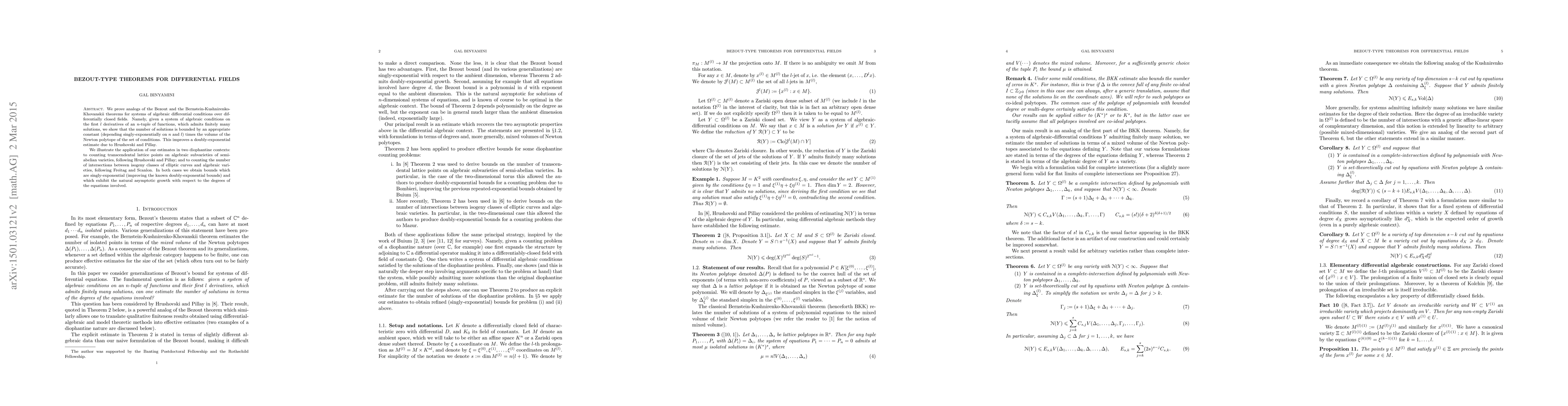 We prove analogs of the Bezout and the Bernstein-Kushnirenko-Khovanskii theorems for systems of algebraic differential conditions over differentially closed fields. Namely, given a system of algebraic conditions on the first $l$ derivatives of an $n$-tuple of functions, which admits finitely many solutions, we show that the number of solutions is bounded by an appropriate constant (depending singly-exponentially on $n$ and $l$) times the volume of the Newton polytope of the set of conditions. This improves a doubly-exponential estimate due to Hrushovski and Pillay. We illustrate the application of our estimates in two diophantine contexts: to counting transcendental lattice points on algebraic subvarieties of semi-abelian varieties, following Hrushovski and Pillay; and to counting the number of intersections between isogeny classes of elliptic curves and algebraic varieties, following Freitag and Scanlon. In both cases we obtain bounds which are singly-exponential (improving the known doubly-exponential bounds) and which exhibit the natural asymptotic growth with respect to the degrees of the equations involved.