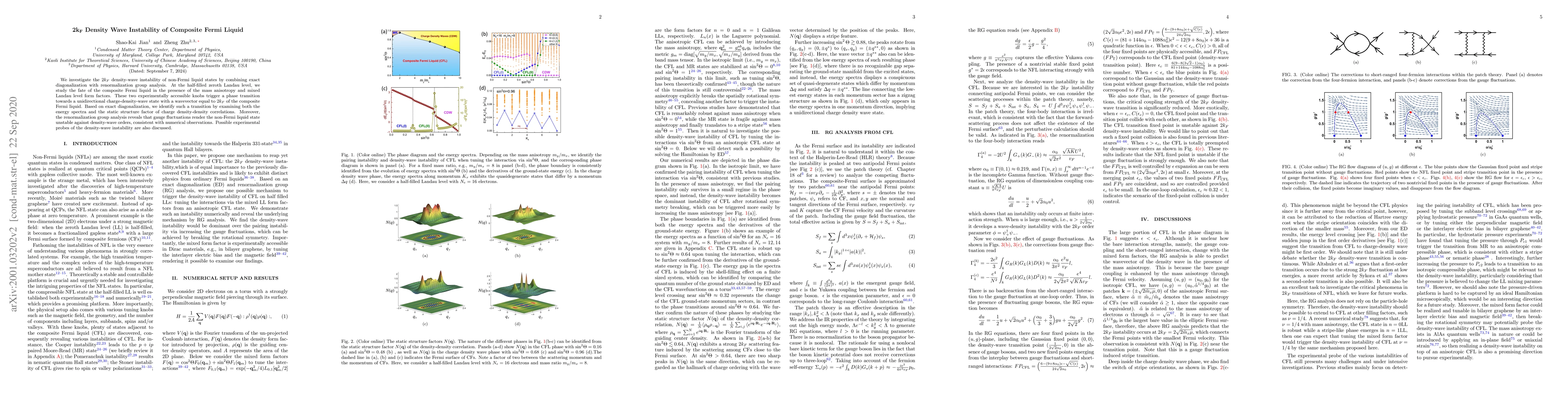 This paper investigates the $2k_F$ density-wave instability in composite Fermi liquids at the half-filled zeroth Landau level, revealing a phase transition triggered by mass anisotropy and mixed Landau level form factors. Exact diagonalization and renormalization group analysis confirm the instability and suggest experimental probes for observing this transition.