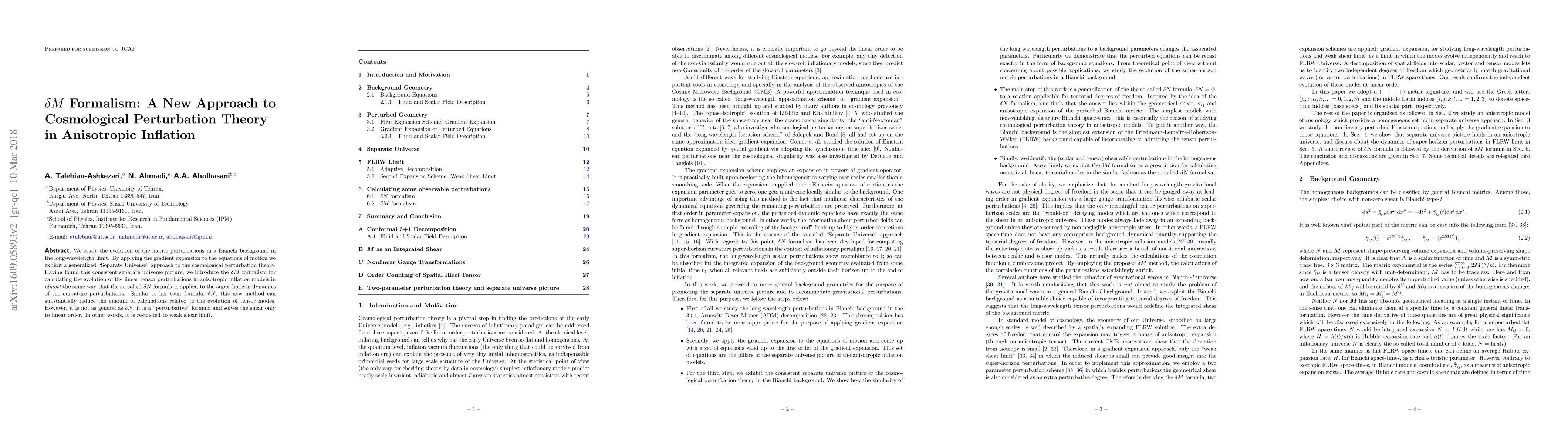 We study the evolution of the metric perturbations in a Bianchi background in the long-wavelength limit. By applying the gradient expansion to the equations of motion we exhibit a generalized "Separate Universe" approach to the cosmological perturbation theory. Having found this consistent separate universe picture, we introduce the $\delta M $ formalism for calculating the evolution of the linear tensor perturbations in anisotropic inflation models in {\it almost} the same way that the so-called $\delta N$ formula is applied to the super-horizon dynamics of the curvature perturbations. Similar to her twin formula, $\delta N$, this new method can substantially reduce the amount of calculations related to the evolution of tensor modes. However, it is not as general as $\delta N$, it is a "perturbative" formula and solves the shear only to linear order. In other words, it is restricted to weak shear limit.