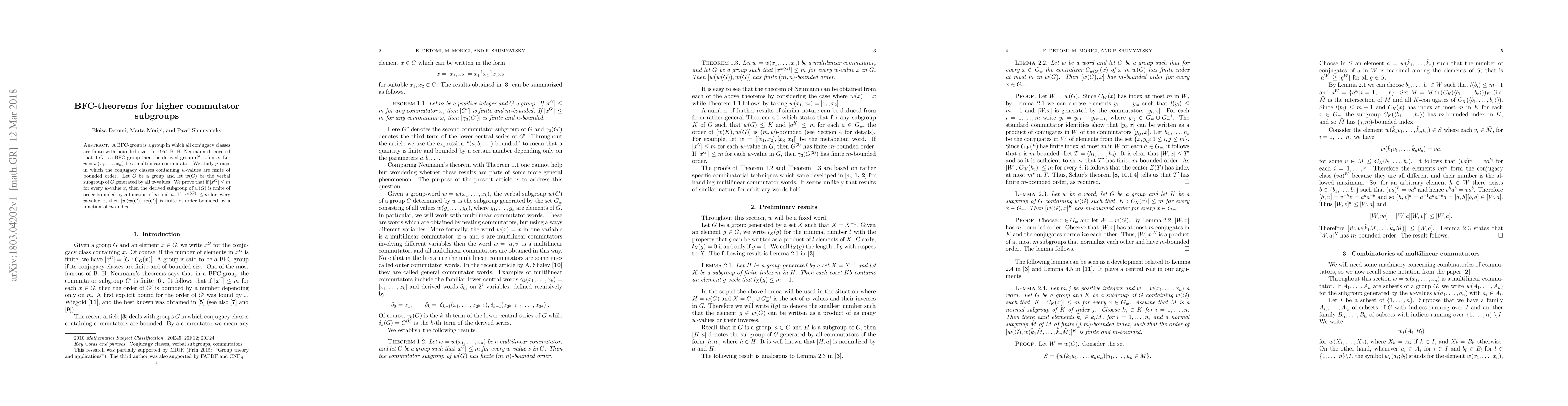 A BFC-group is a group in which all conjugacy classes are finite with bounded size. In 1954 B. H. Neumann discovered that if G is a BFC-group then the derived group G' is finite. Let w=w(x_1,\dots,x_n) be a multilinear commutator. We study groups in which the conjugacy classes containing w-values are finite of bounded order. Let G be a group and let w(G) be the verbal subgroup of G generated by all w-values. We prove that if x^G has size at most m for every w-value x, then the derived subgroup of w(G) is finite of order bounded by a function of m and n. If x^{w(G)} has size at most m for every w-value x, then [w(w(G)),w(G)] is finite of order bounded by a function of m and n.