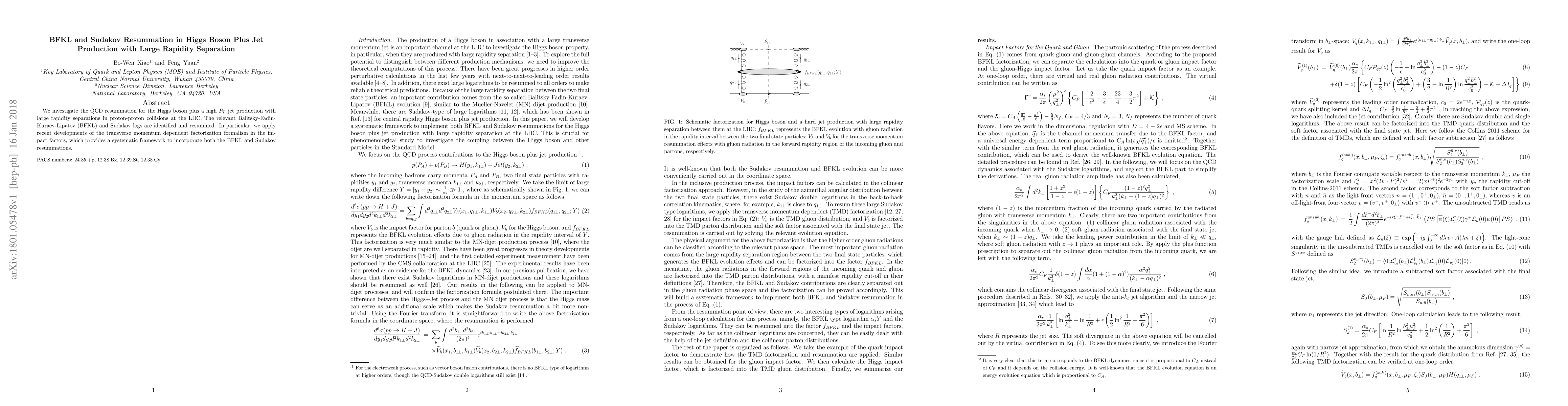 We investigate the QCD resummation for the Higgs boson plus a high $P_T$ jet production with large rapidity separations in proton-proton collisions at the LHC. The relevant Balitsky-Fadin-Kuraev-Lipatov (BFKL) and Sudakov logs are identified and resummed. In particular, we apply recent developments of the transverse momentum dependent factorization formalism in the impact factors, which provides a systematic framework to incorporate both the BFKL and Sudakov resummations.